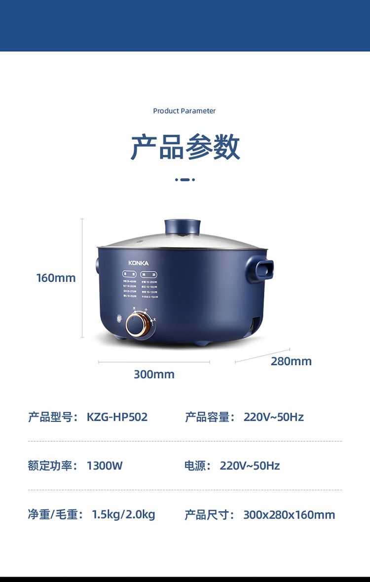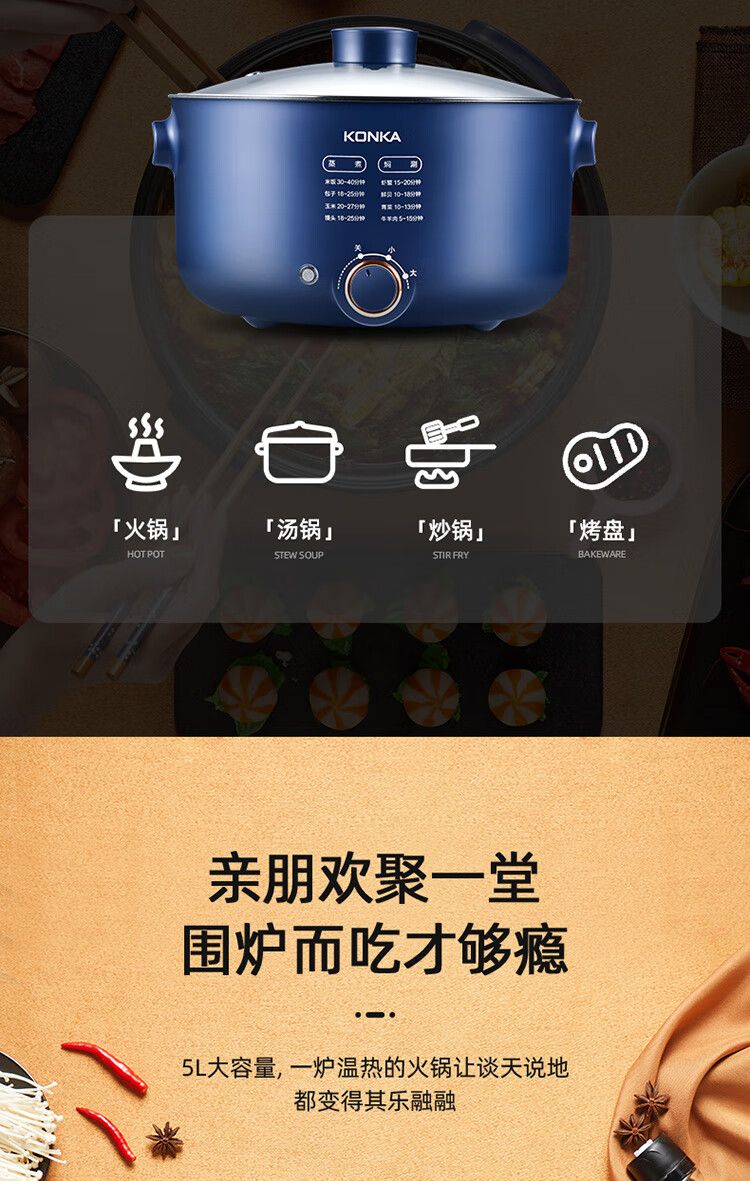 商品名称:康佳KONKA 5L电火锅家用电炒锅多功能电热锅KZG-HP502