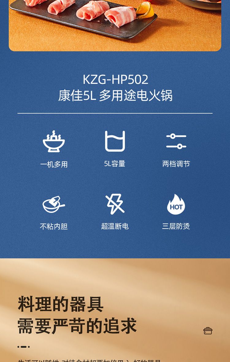 康佳KONKA 5L电火锅家用电炒锅多功能电热锅KZG-HP502