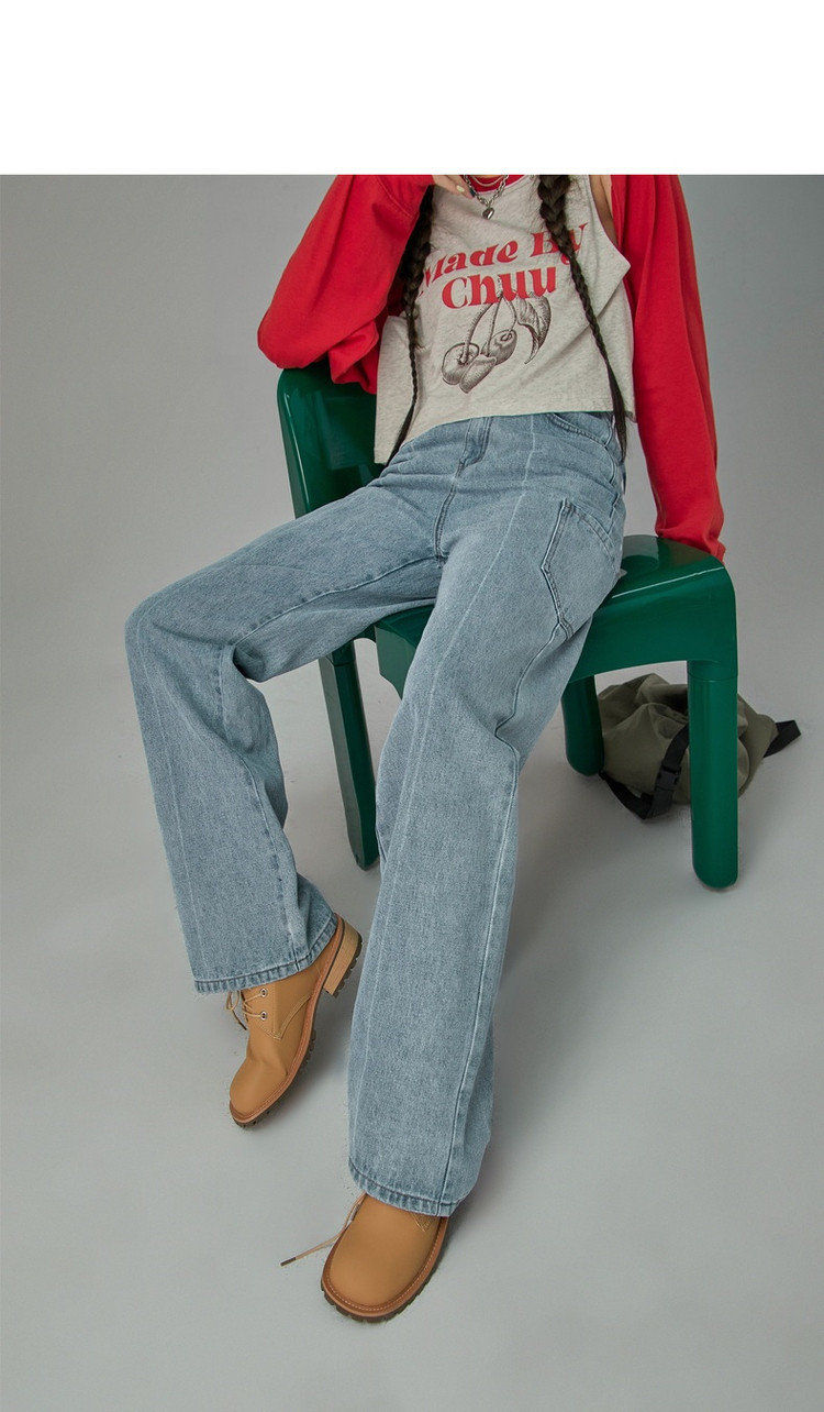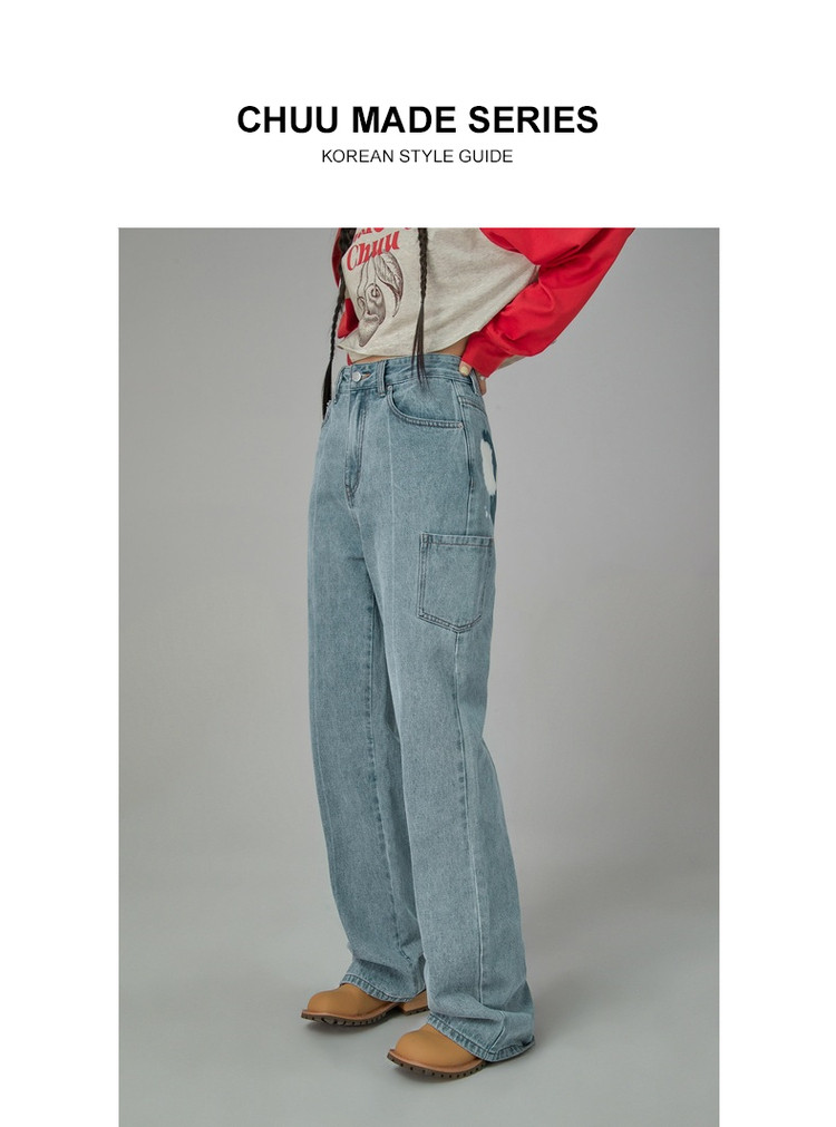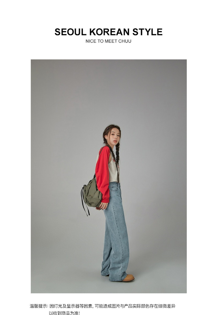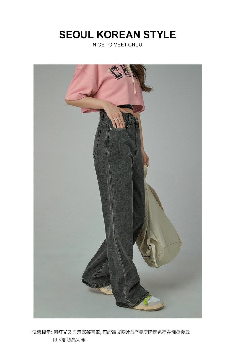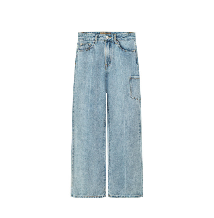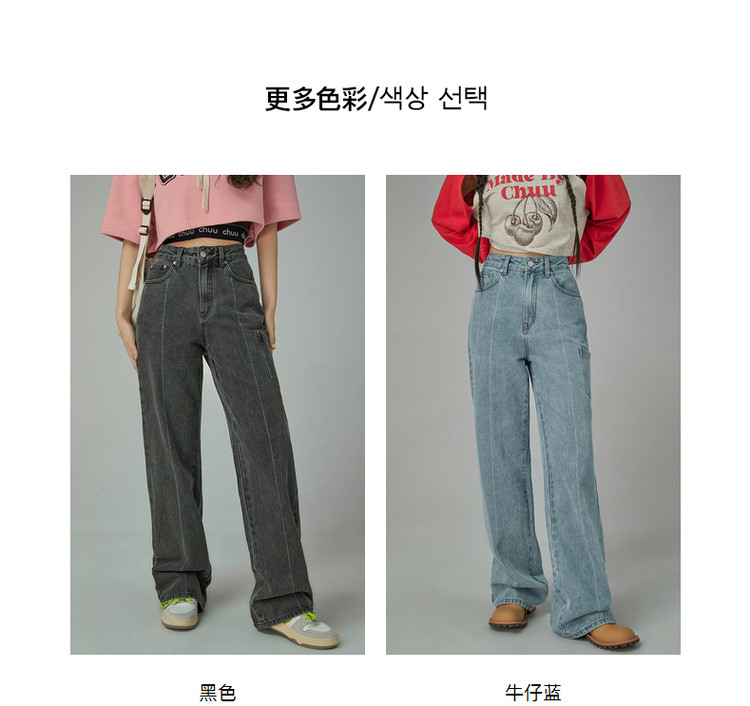 商品名称:口袋高腰牛仔裤女春秋季时尚百搭纯色气质阔腿裤子潮 036563