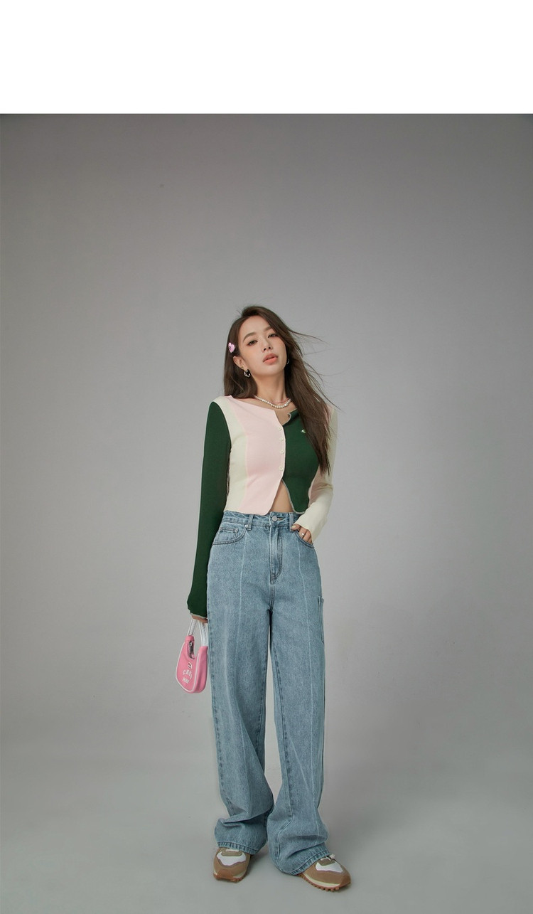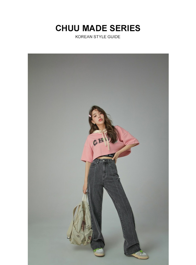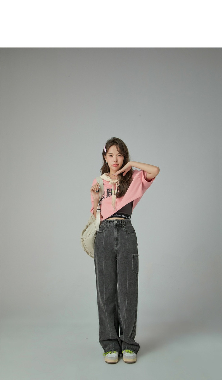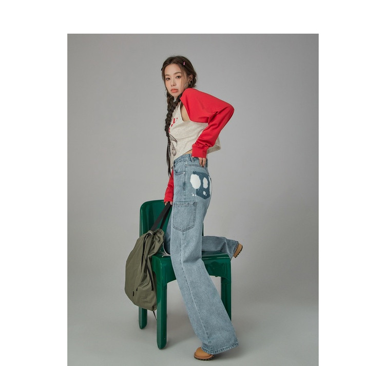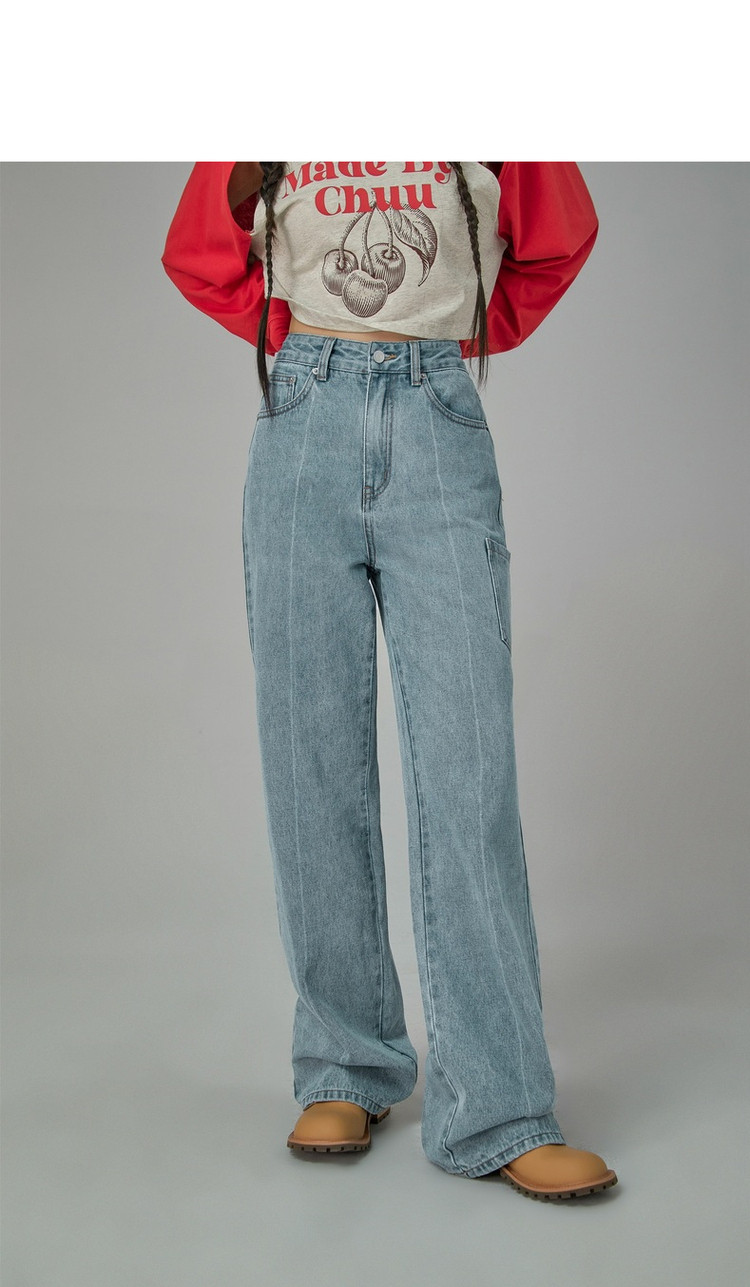 商品名称:口袋高腰牛仔裤女春秋季时尚百搭纯色气质阔腿裤子潮 036563
