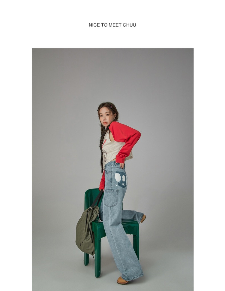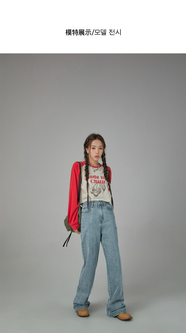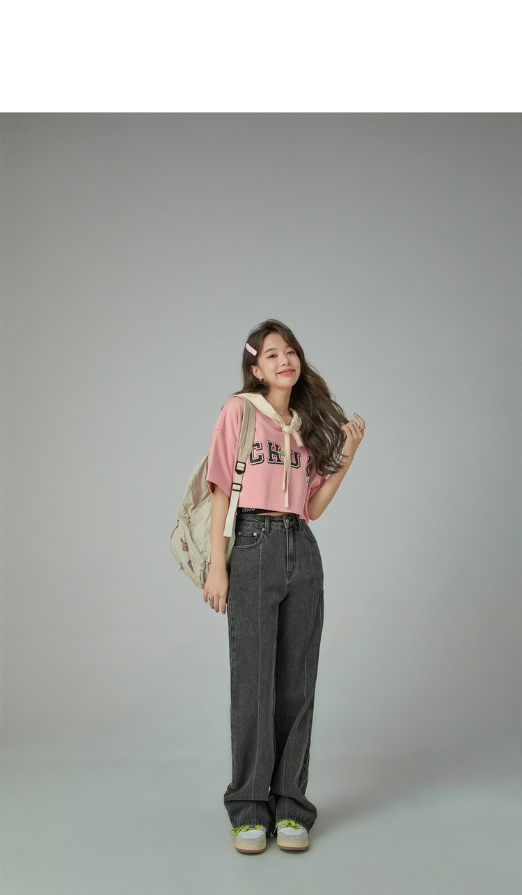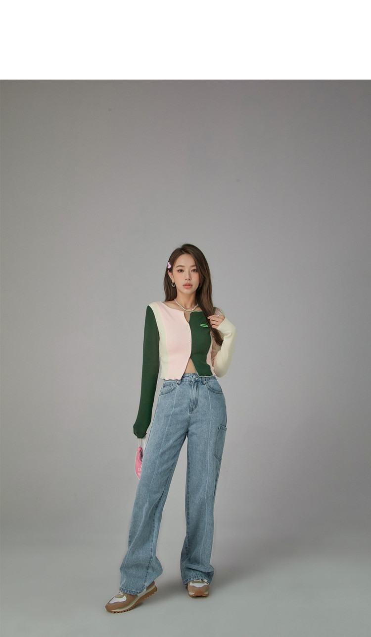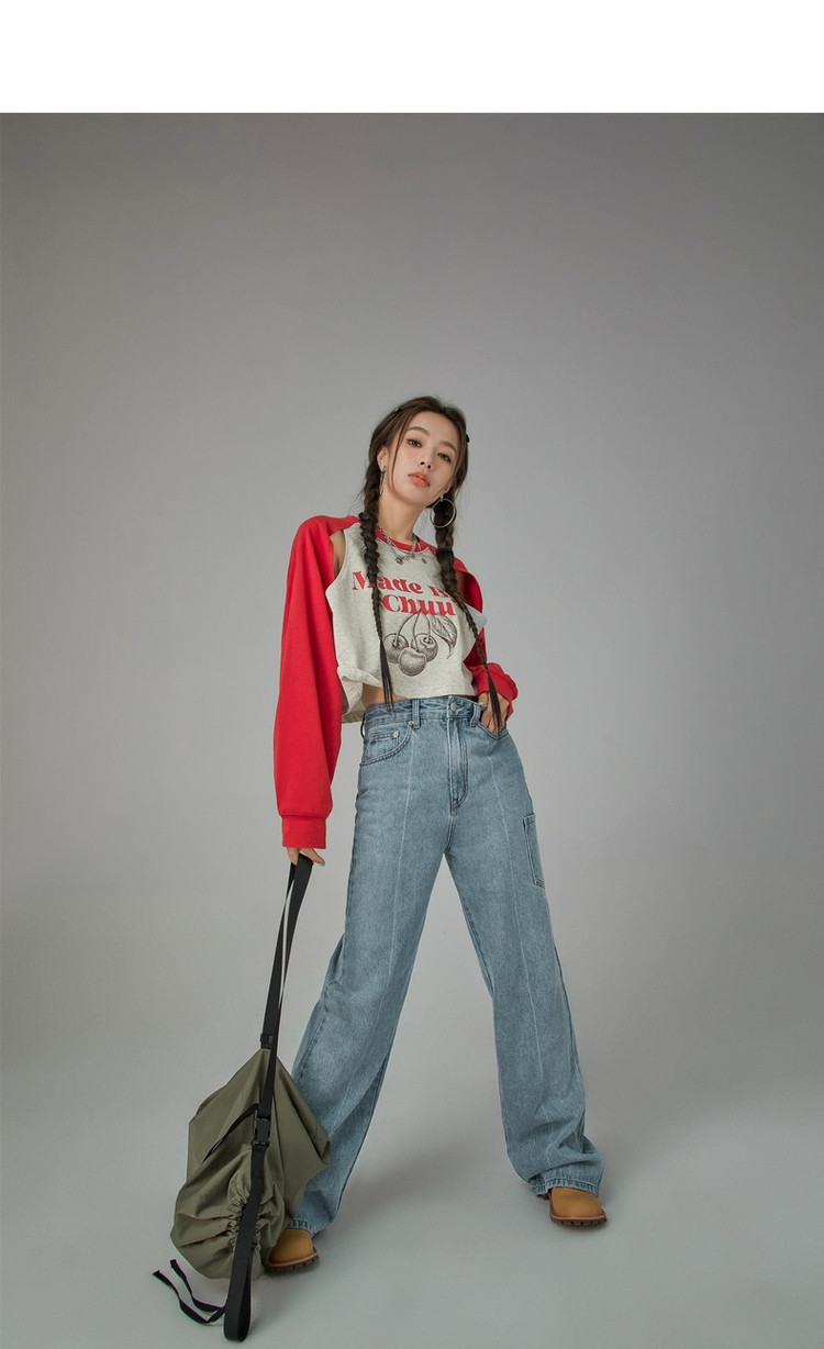 商品名称:口袋高腰牛仔裤女春秋季时尚百搭纯色气质阔腿裤子潮 036563
