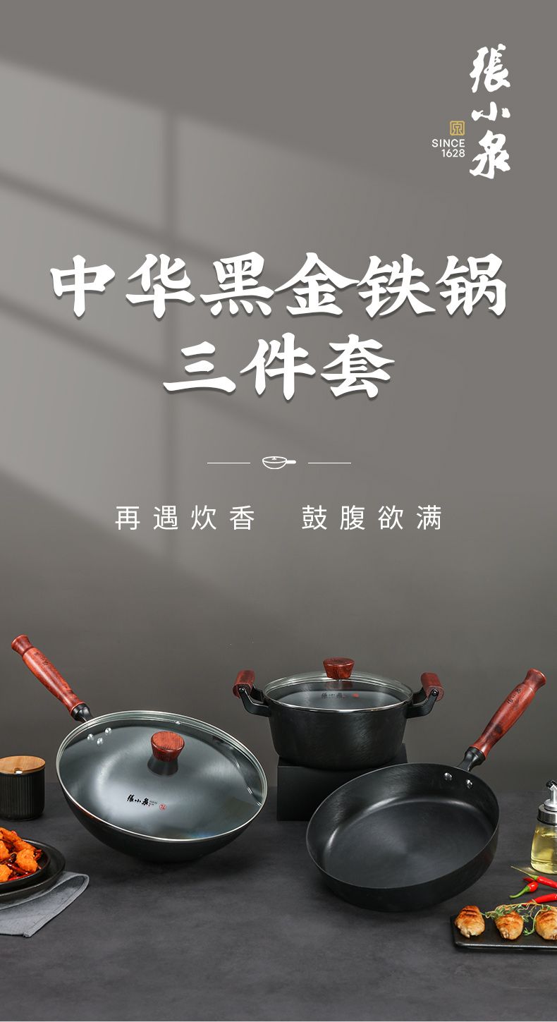 商品名称:张小泉中华黑金铁锅(三件套)C35323000