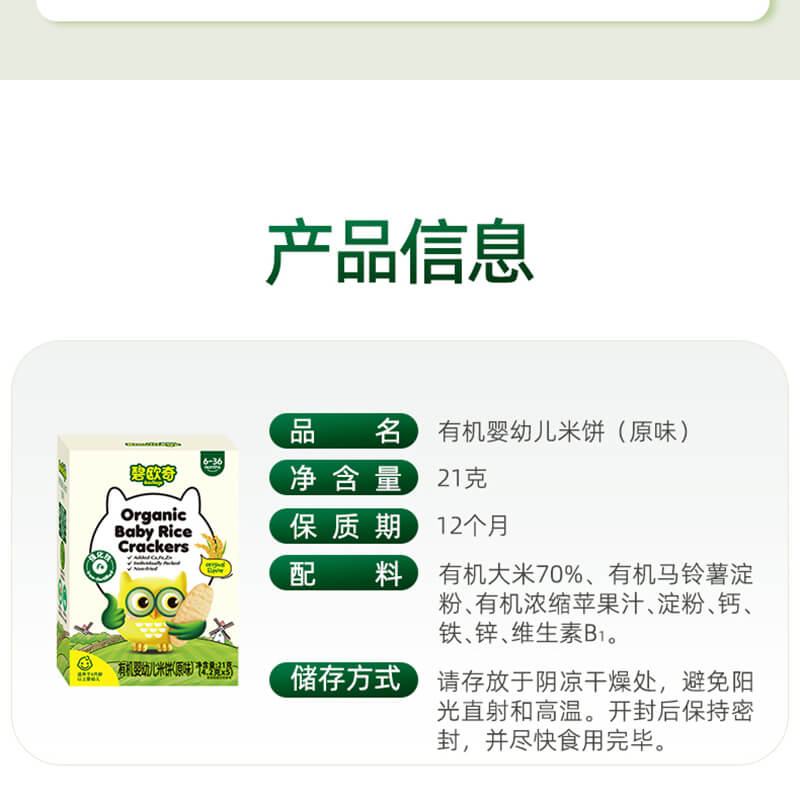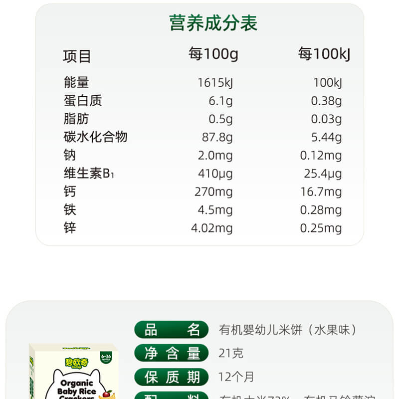 商品名称:碧欧奇 婴幼儿米饼有机无添加宝宝零食