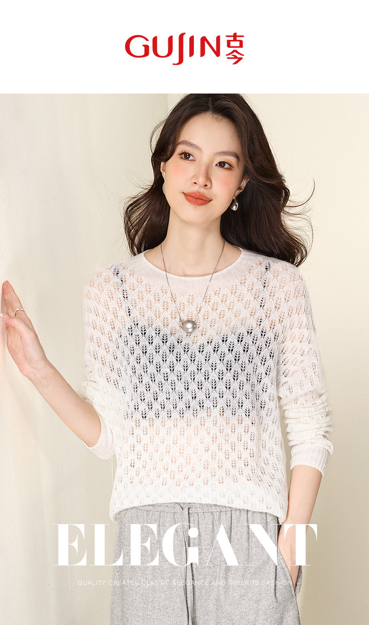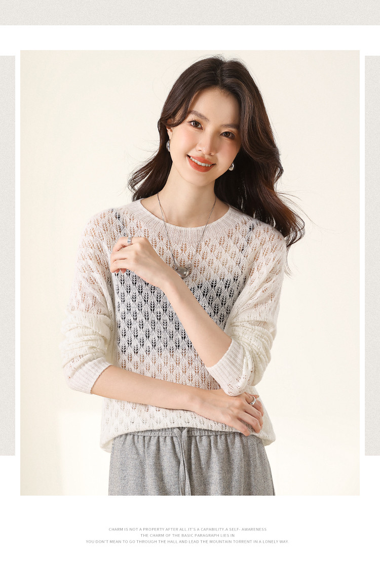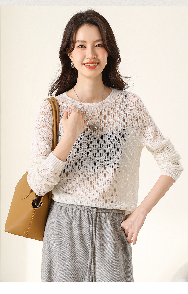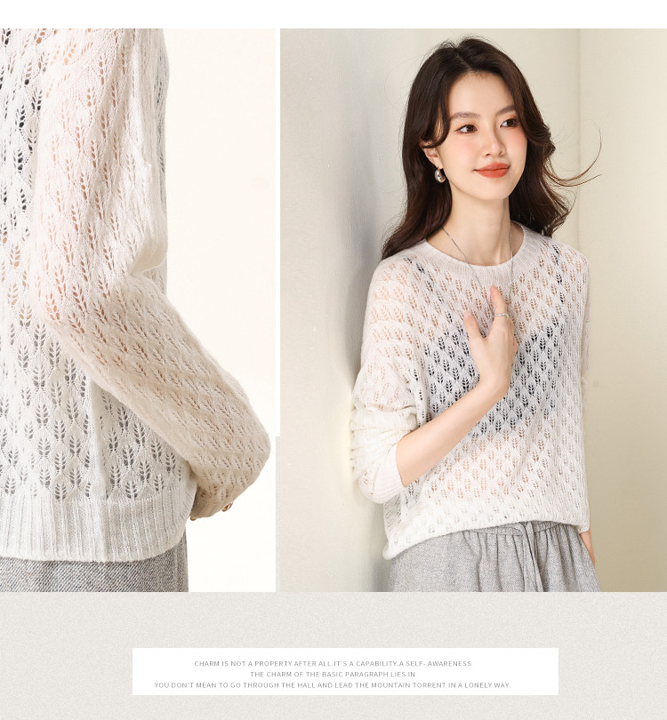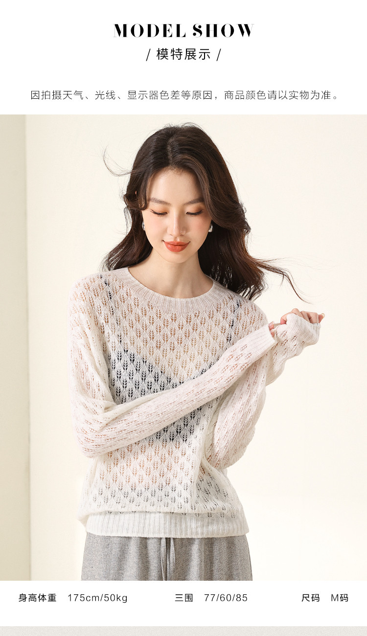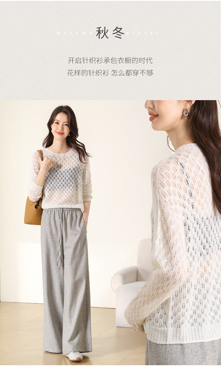 【含山羊绒】圆领镂空羊毛套衫纯色休闲百搭针织打底羊毛衫 732819