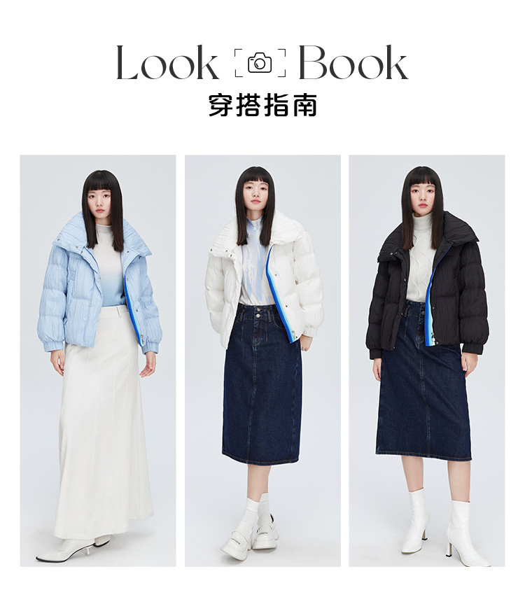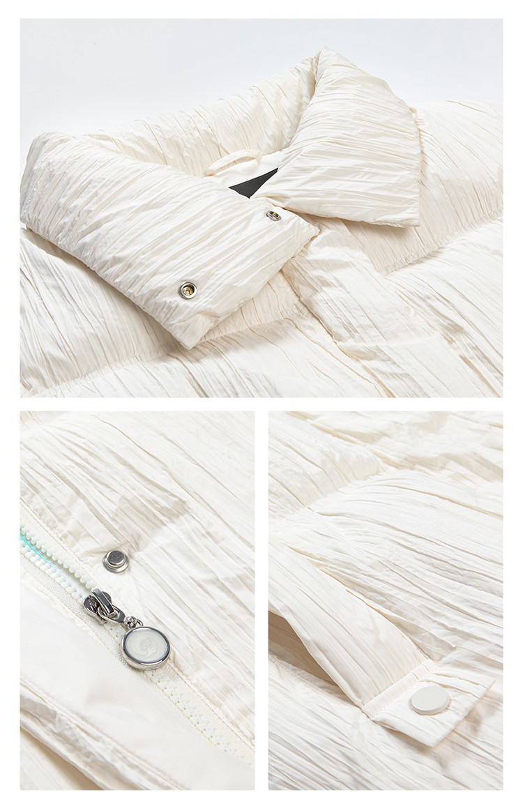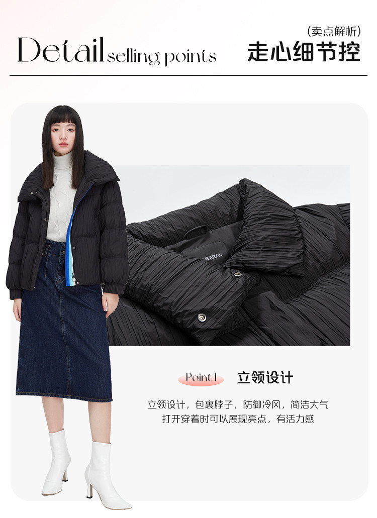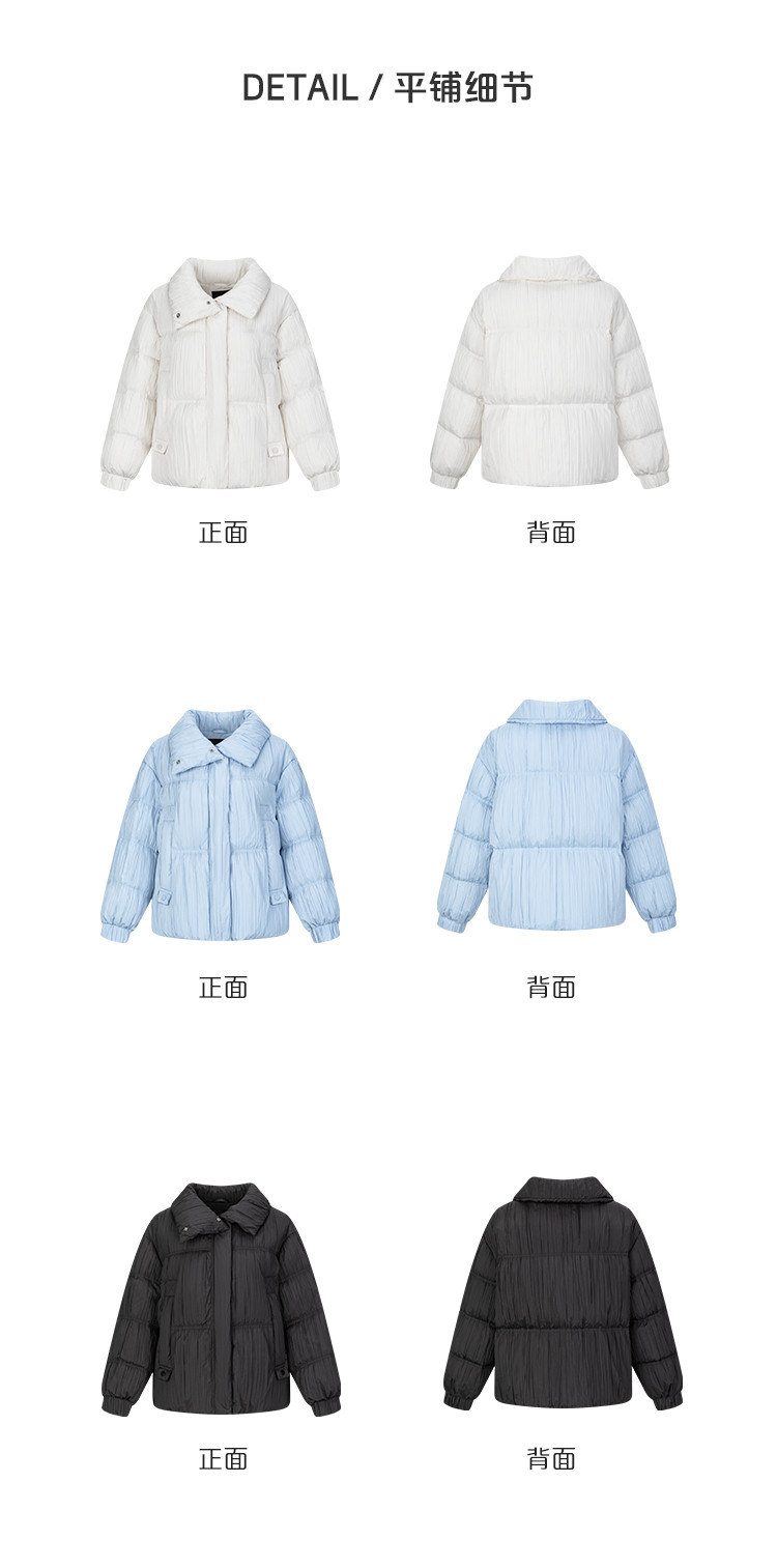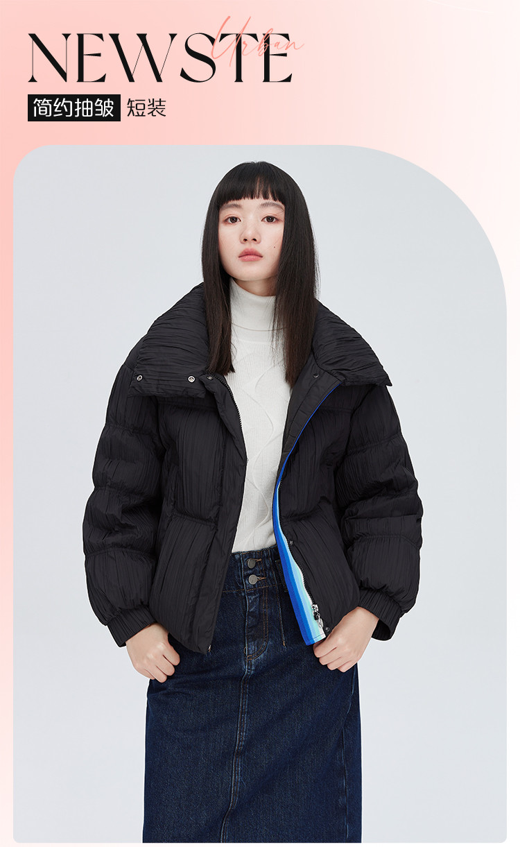 商品名称:【商场同款】简约抽褶立领羽绒服女短款时尚织带装饰鸭绒外套女 209238