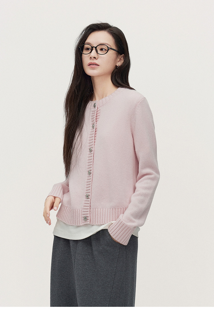 2024秋冬可机洗100%羊绒慵懒风毛衣针织外套开衫女 003919