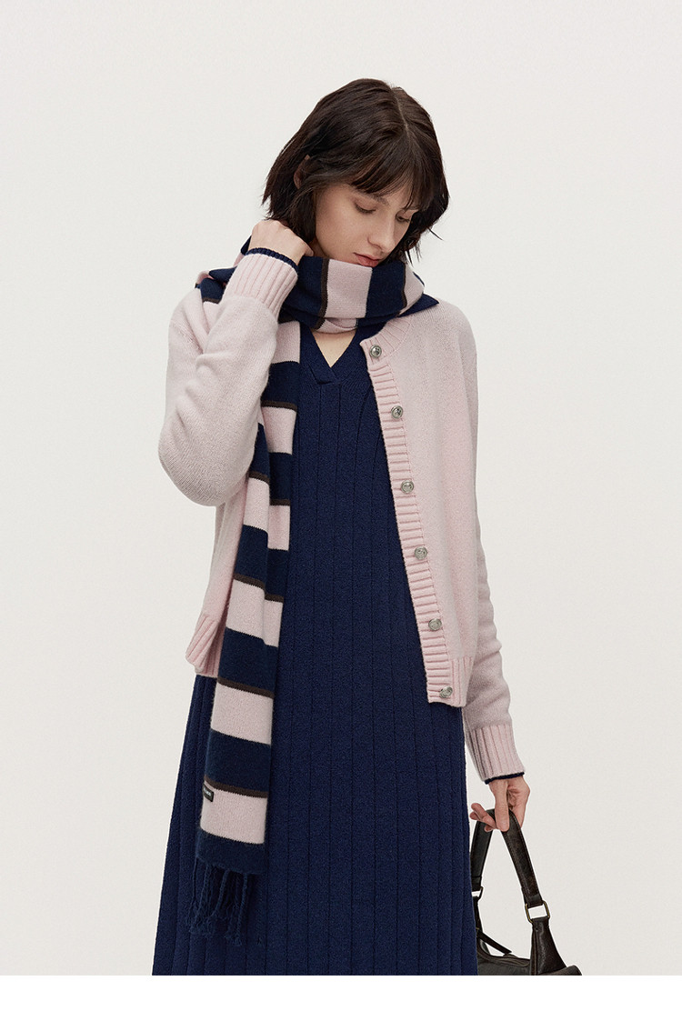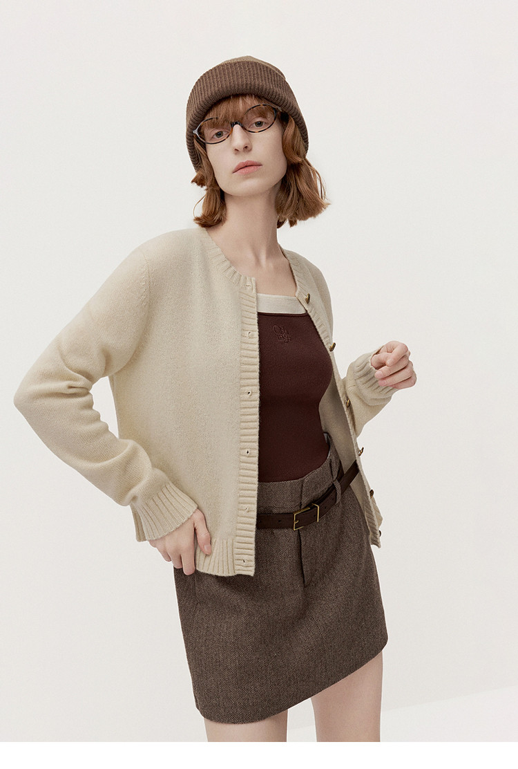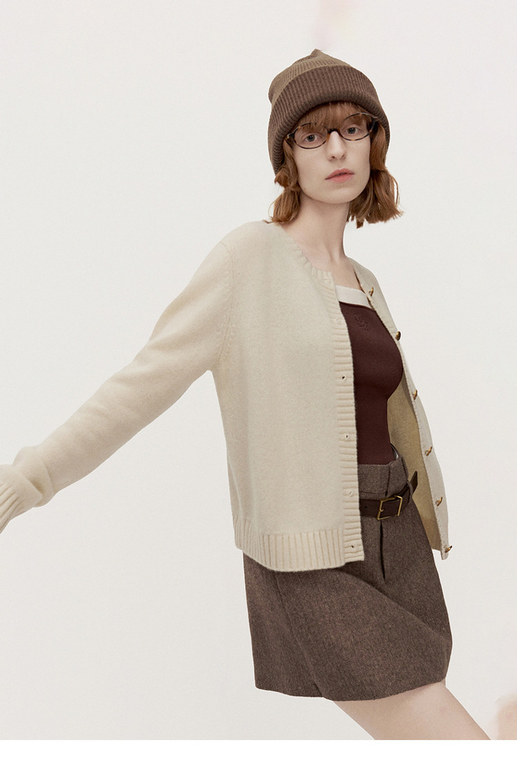 商品名称:2024秋冬可机洗100%羊绒慵懒风毛衣针织外套开衫女 003919