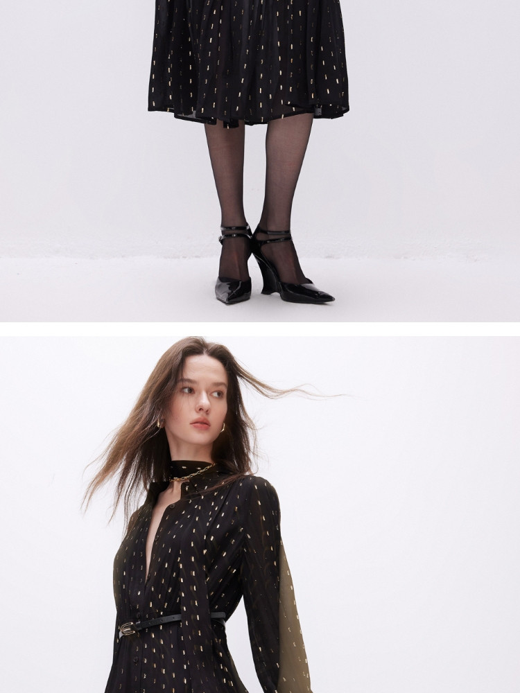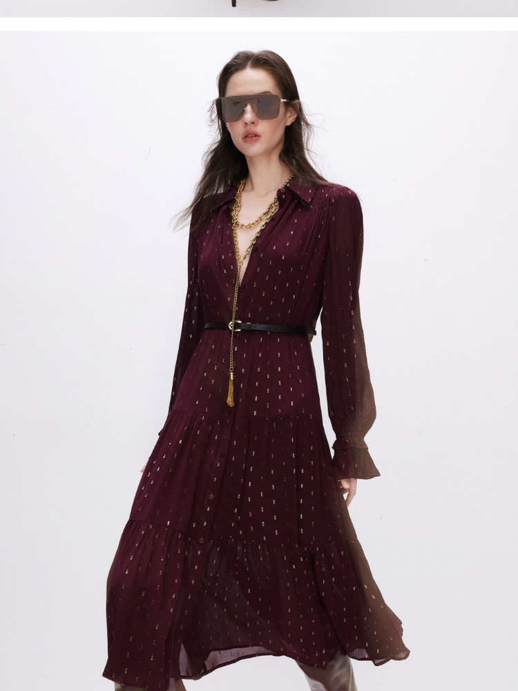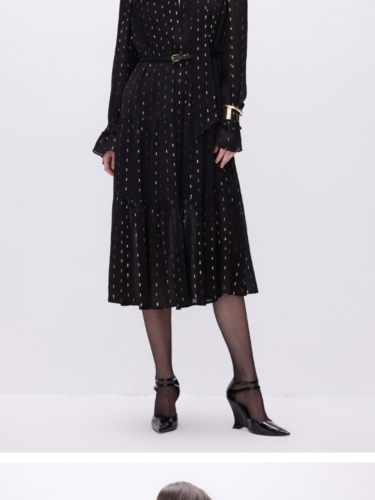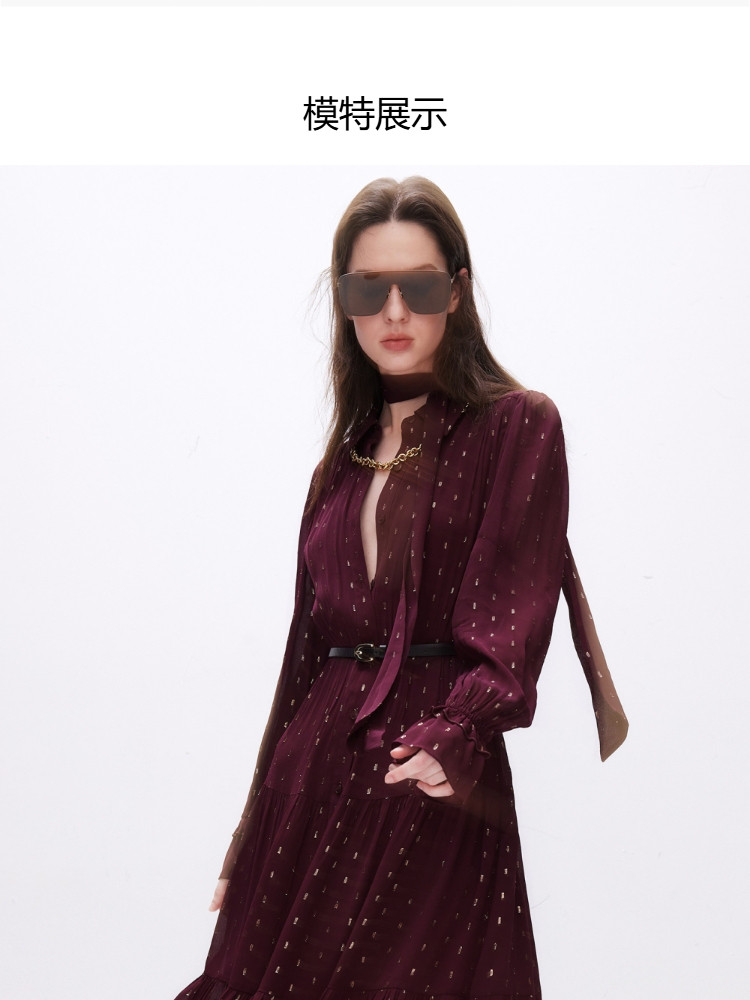 商品名称:【轻薄亲肤】2025春季优雅飘带中长款长袖连衣裙女 861018