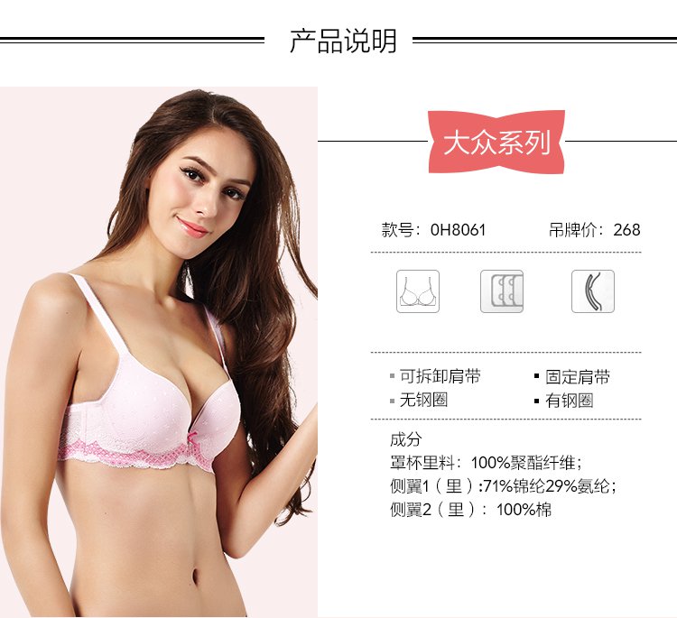 商品名称:【捡漏款】性感蕾丝上托侧收清新聚拢文胸罩内衣 348043