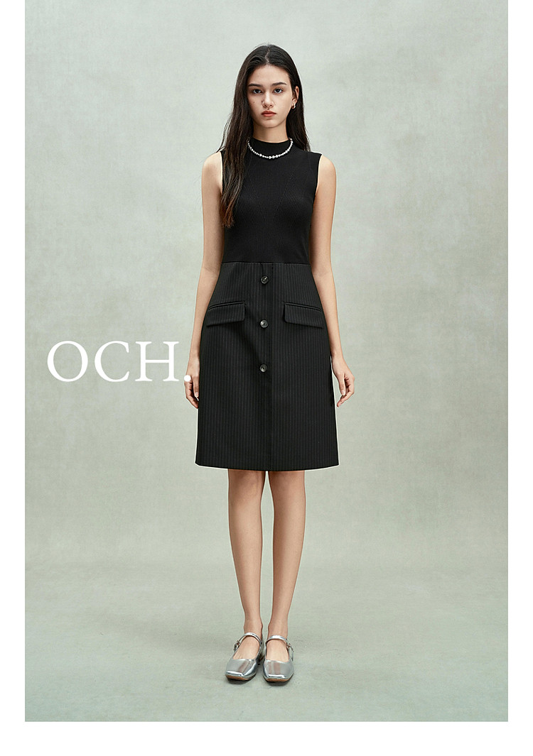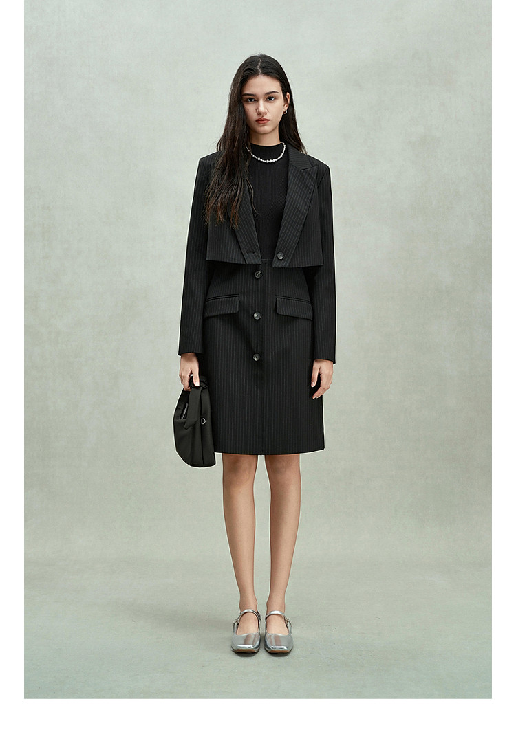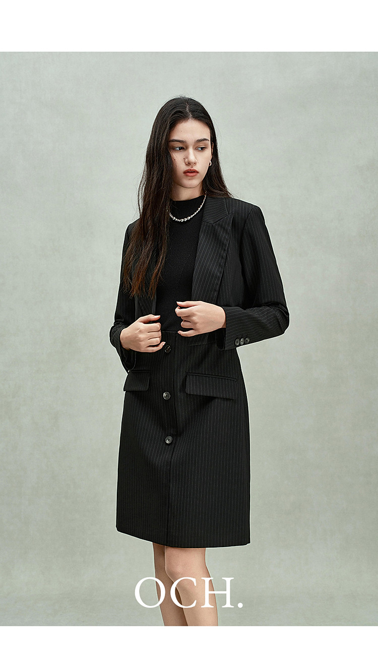 限定系列OCH.春装 条纹西装小黑裙气质连衣裙两件套装女 813903