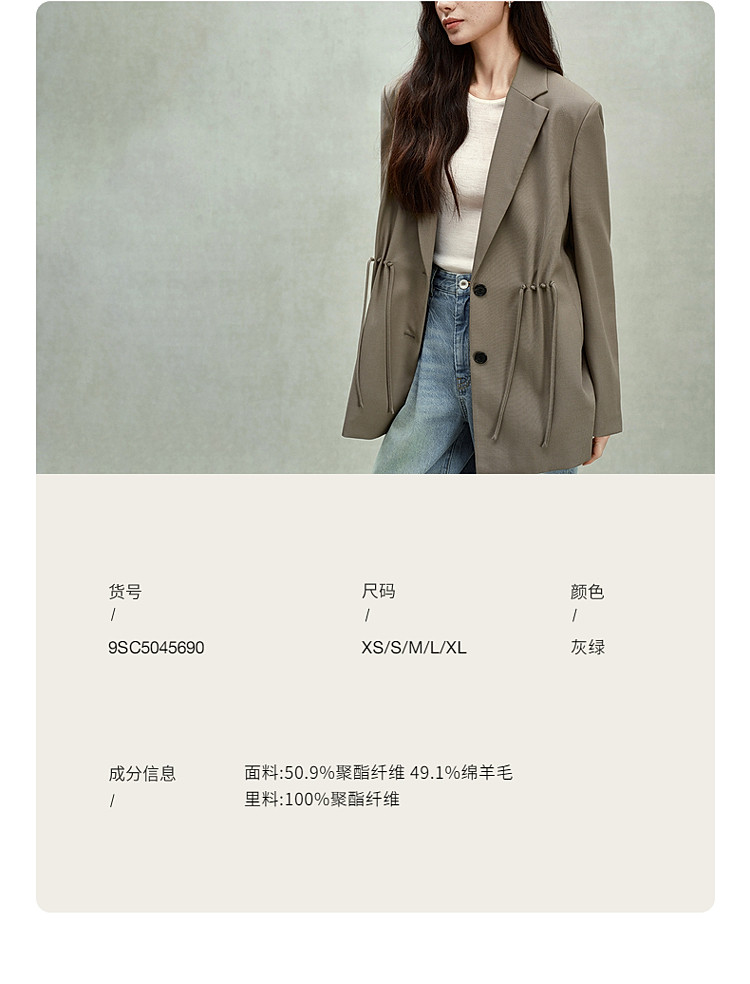 商品名称:限定系列OCH.春装 进口精纺呢中长款抽绳设计感西装外套 225679