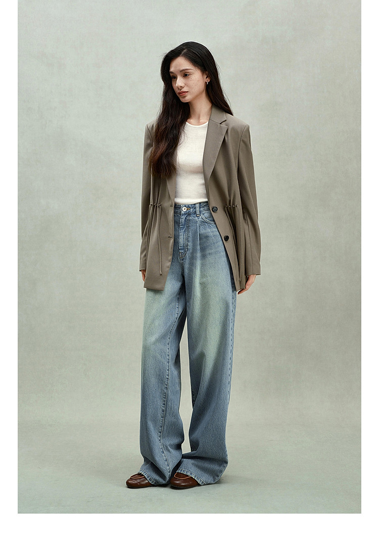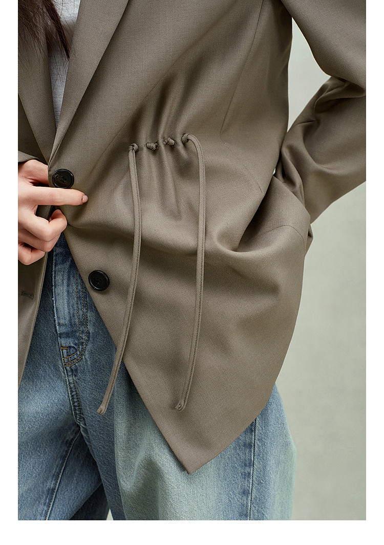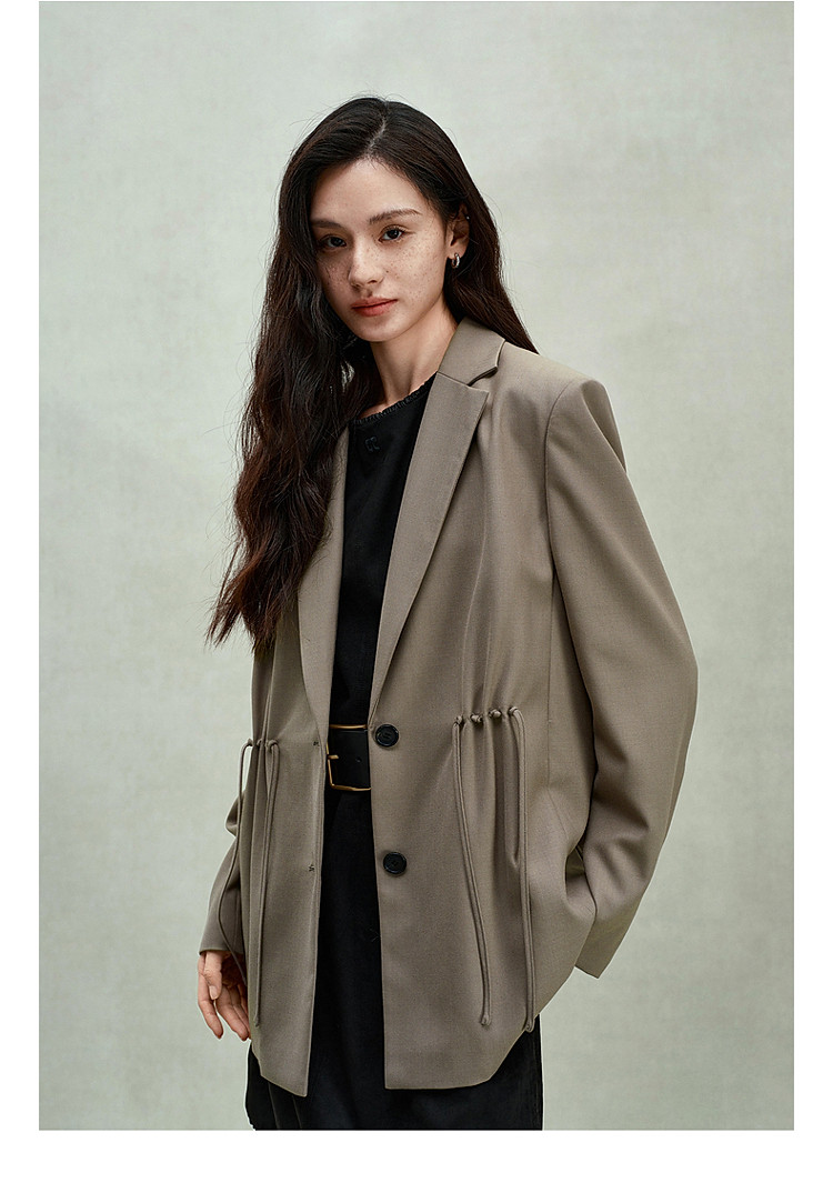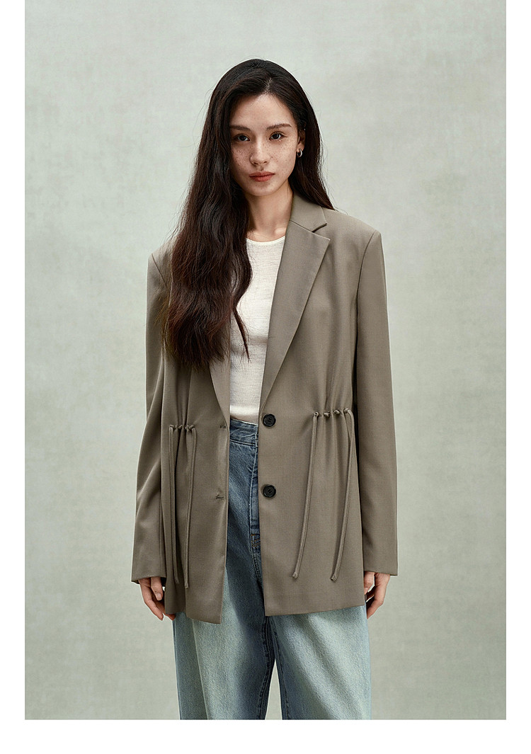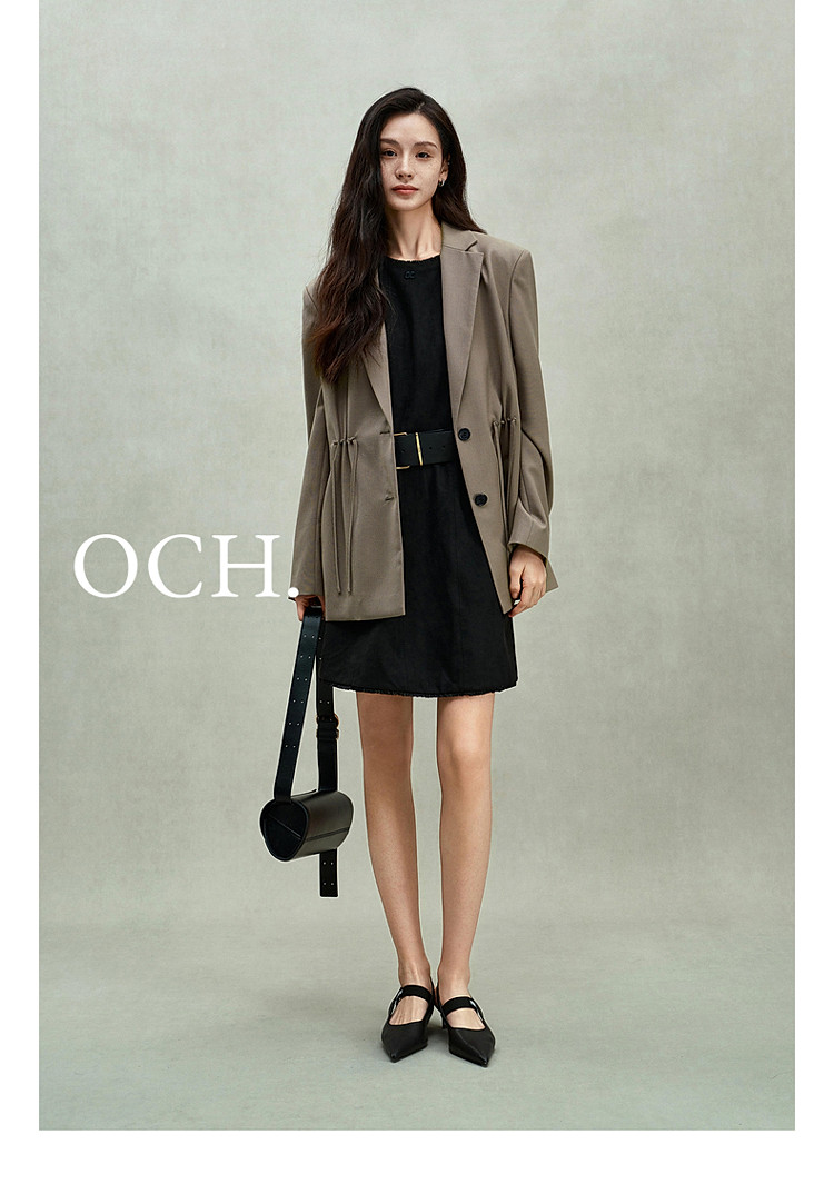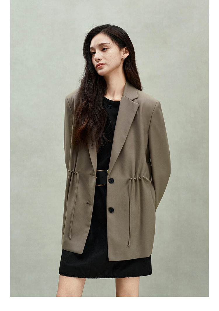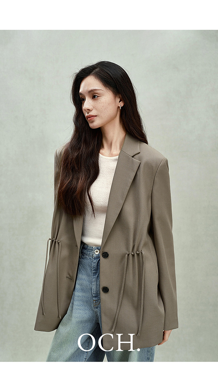 限定系列OCH.春装 进口精纺呢中长款抽绳设计感西装外套 225679