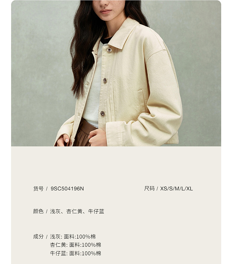 商品名称:限定系列OCH.春装 复古风做旧纯棉休闲宽松牛仔短外套女 319887