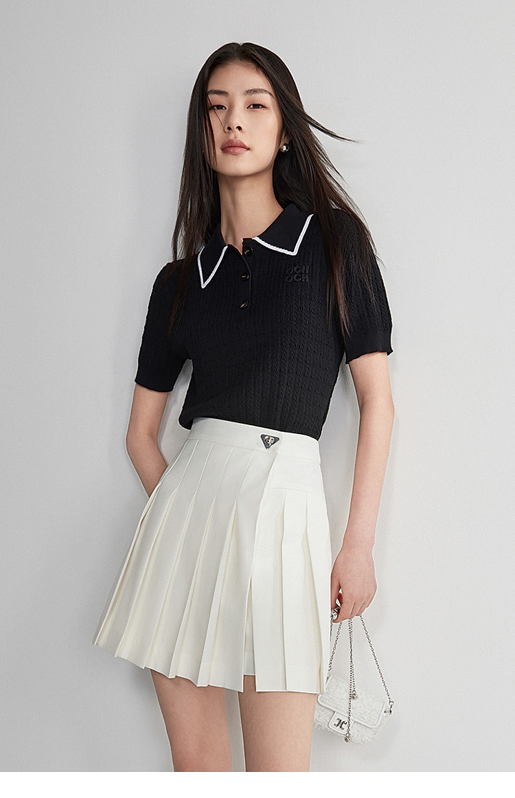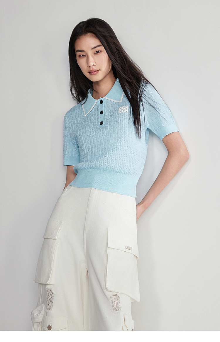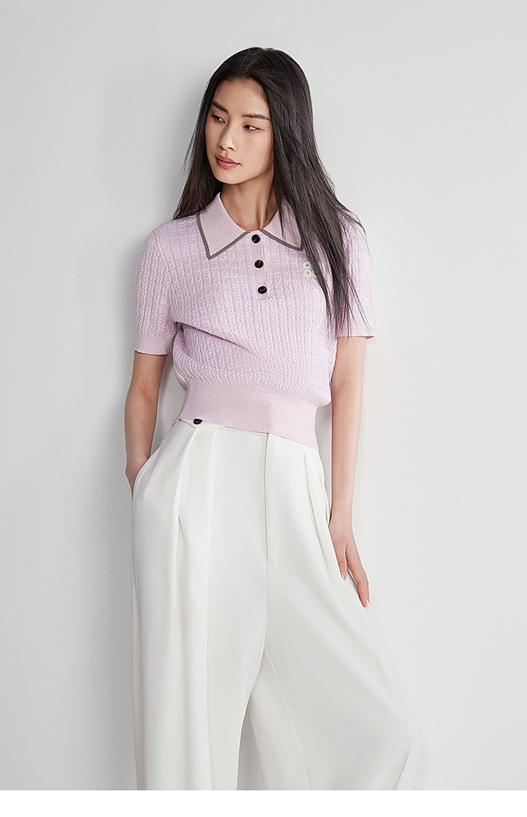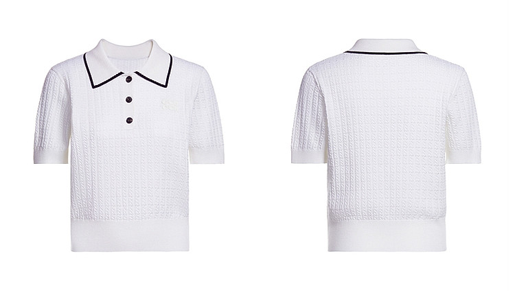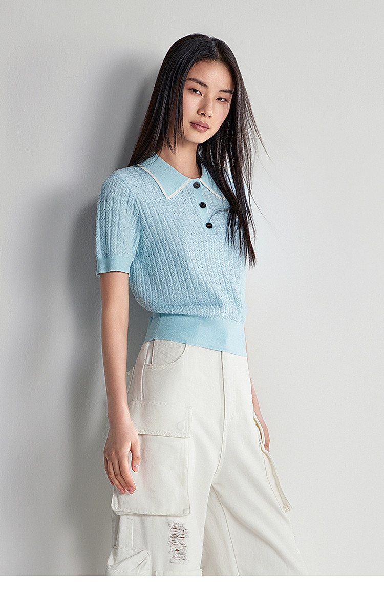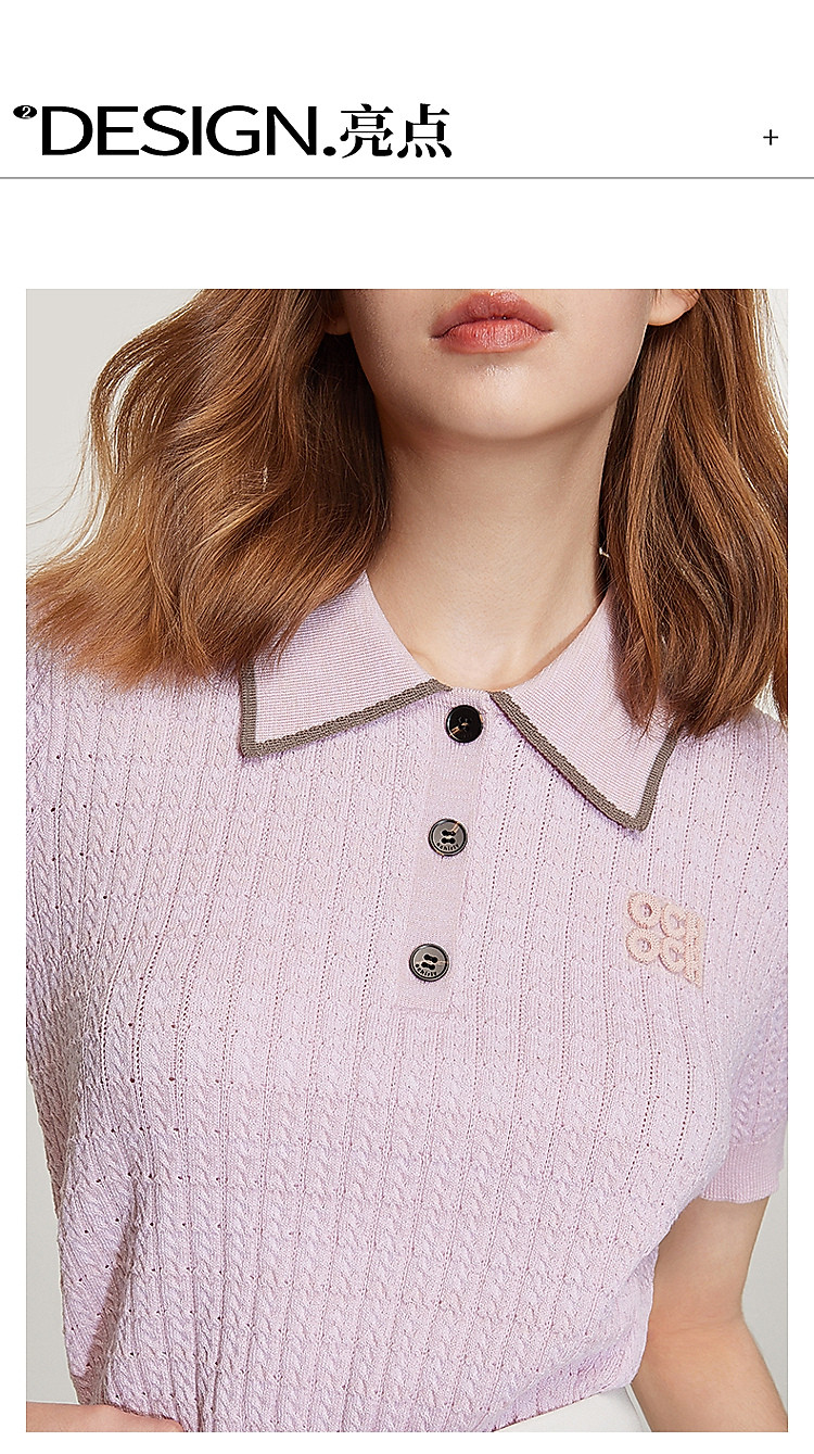 商品名称:春装 氧气衫Polo领短袖针织衫女撞色透气凉爽 016271