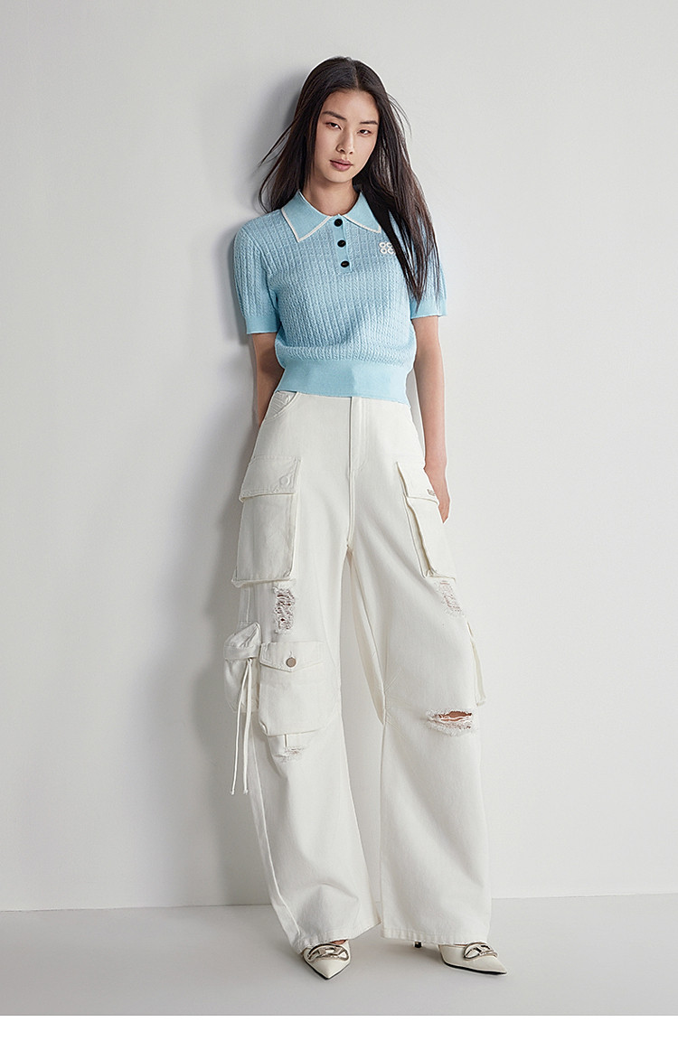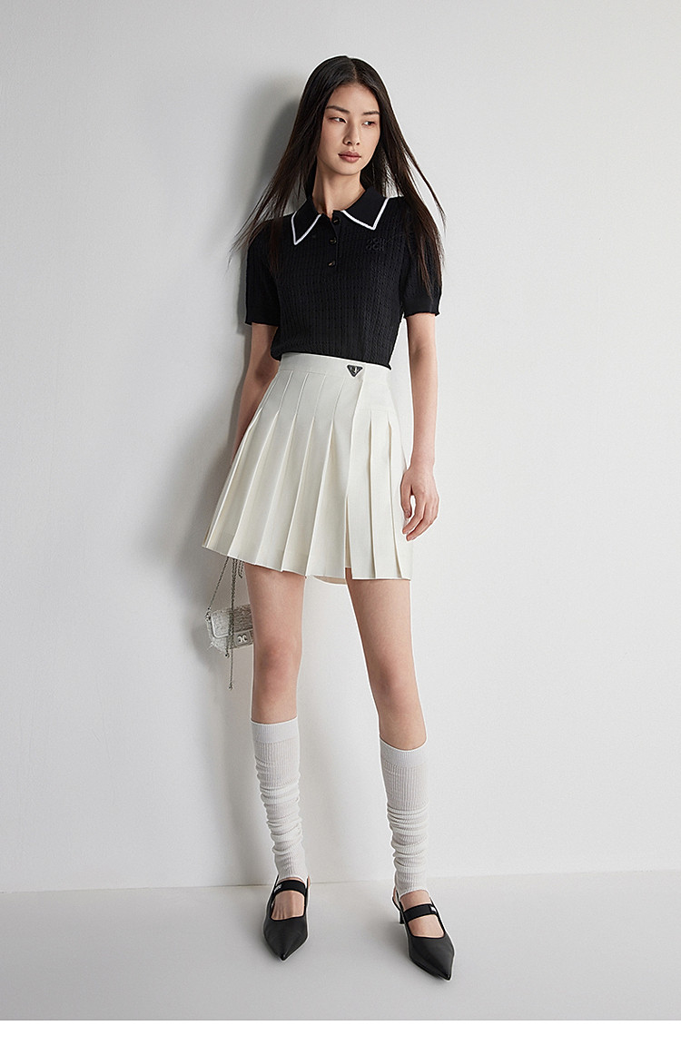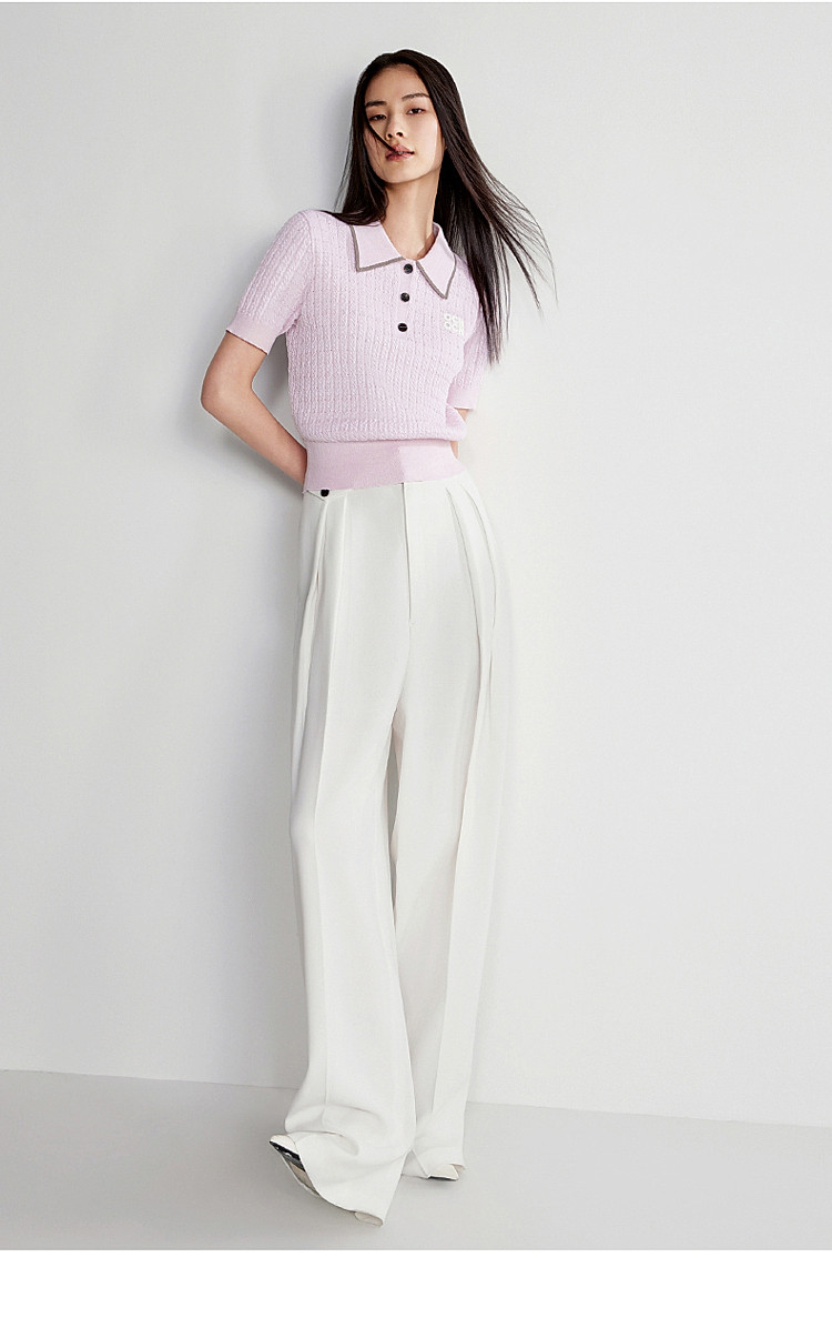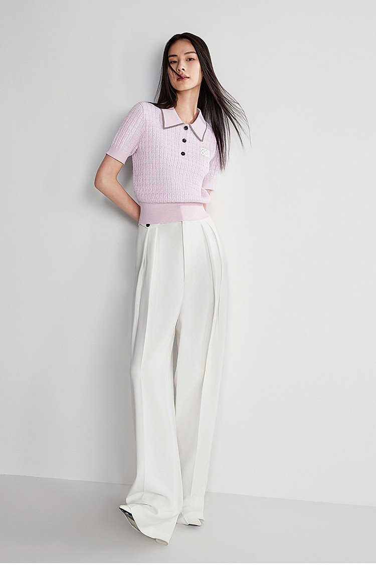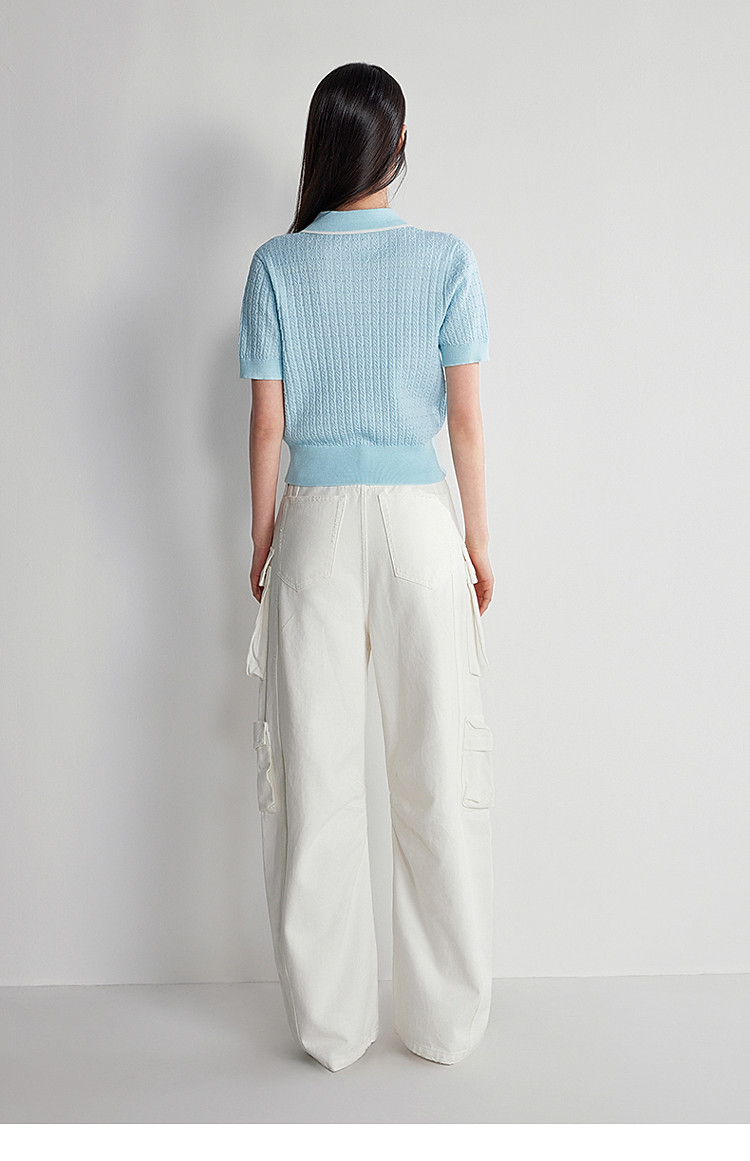 商品名称:春装 氧气衫Polo领短袖针织衫女撞色透气凉爽 016271