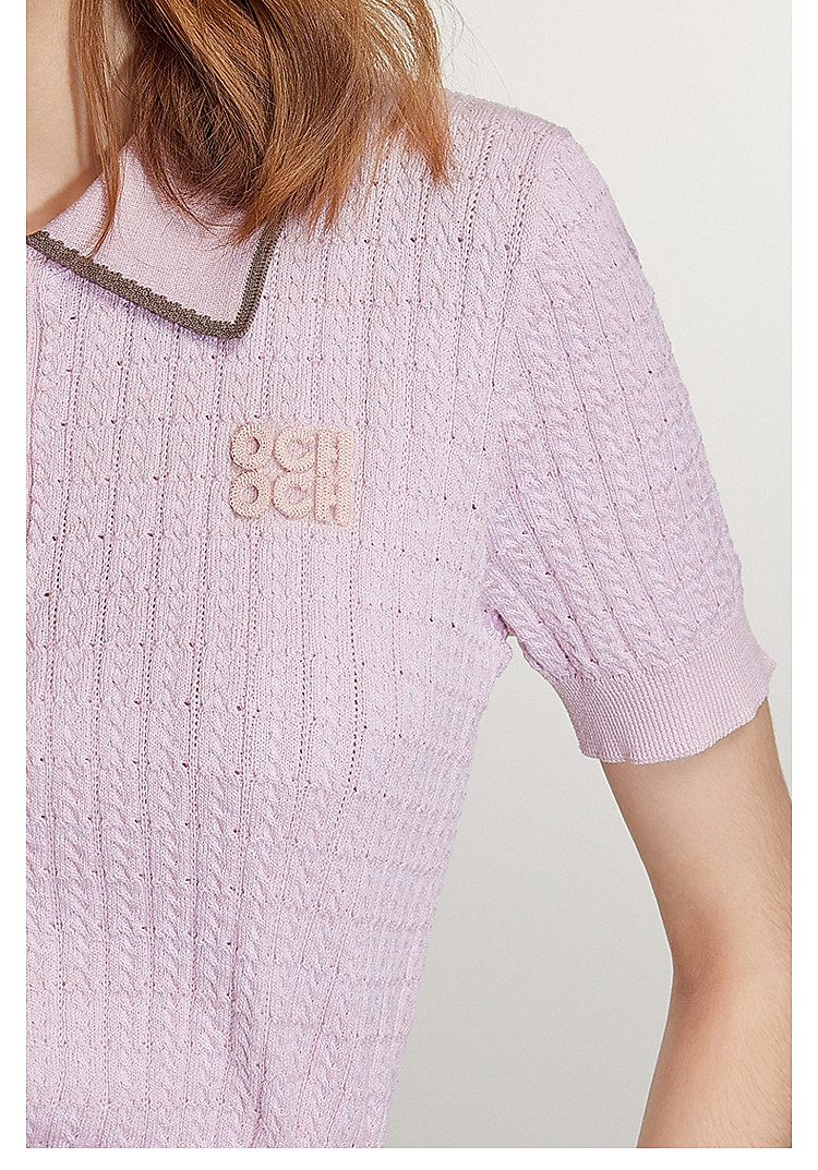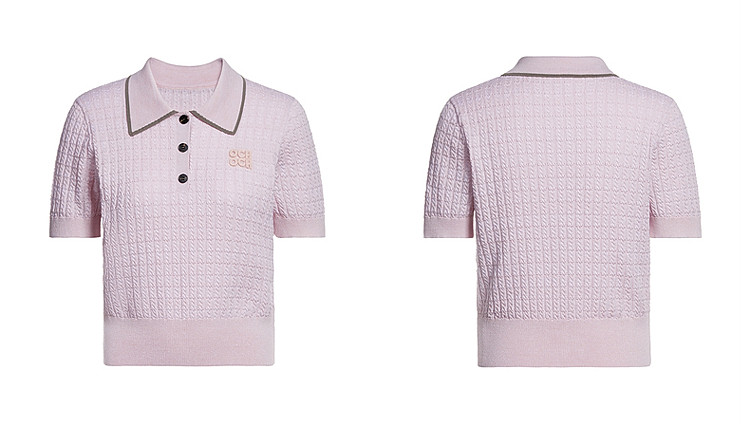 春装 氧气衫Polo领短袖针织衫女撞色透气凉爽 016271