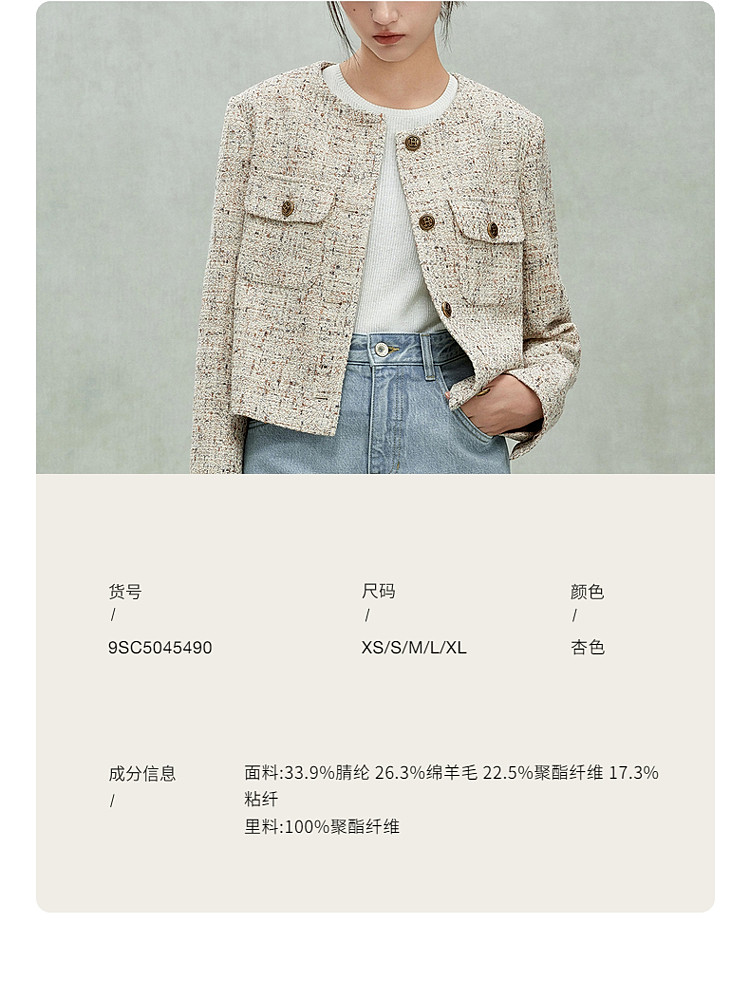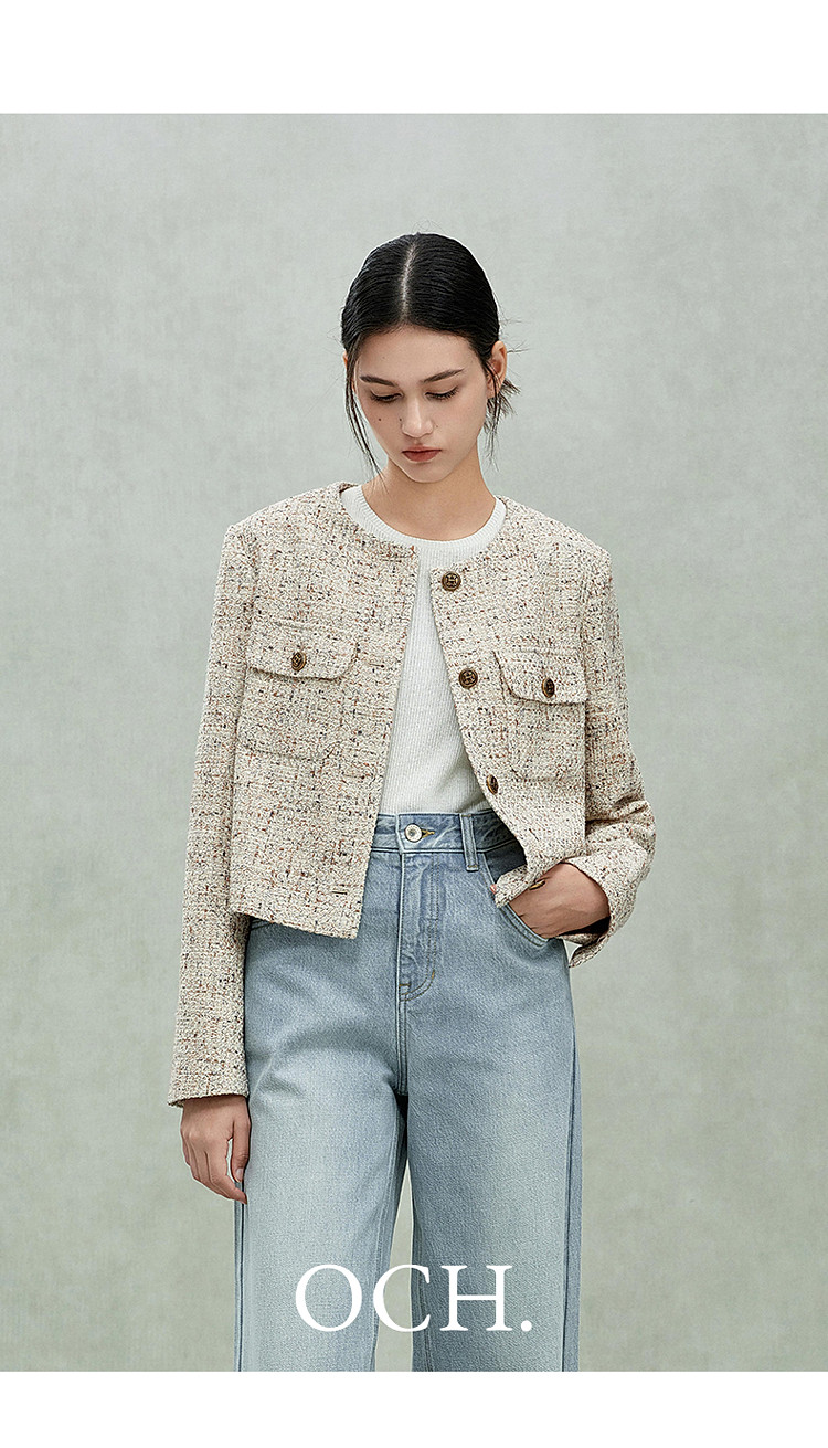 商品名称:限定系列OCH.春装 羊毛混纺高级感气质通勤小香风外套女 143759