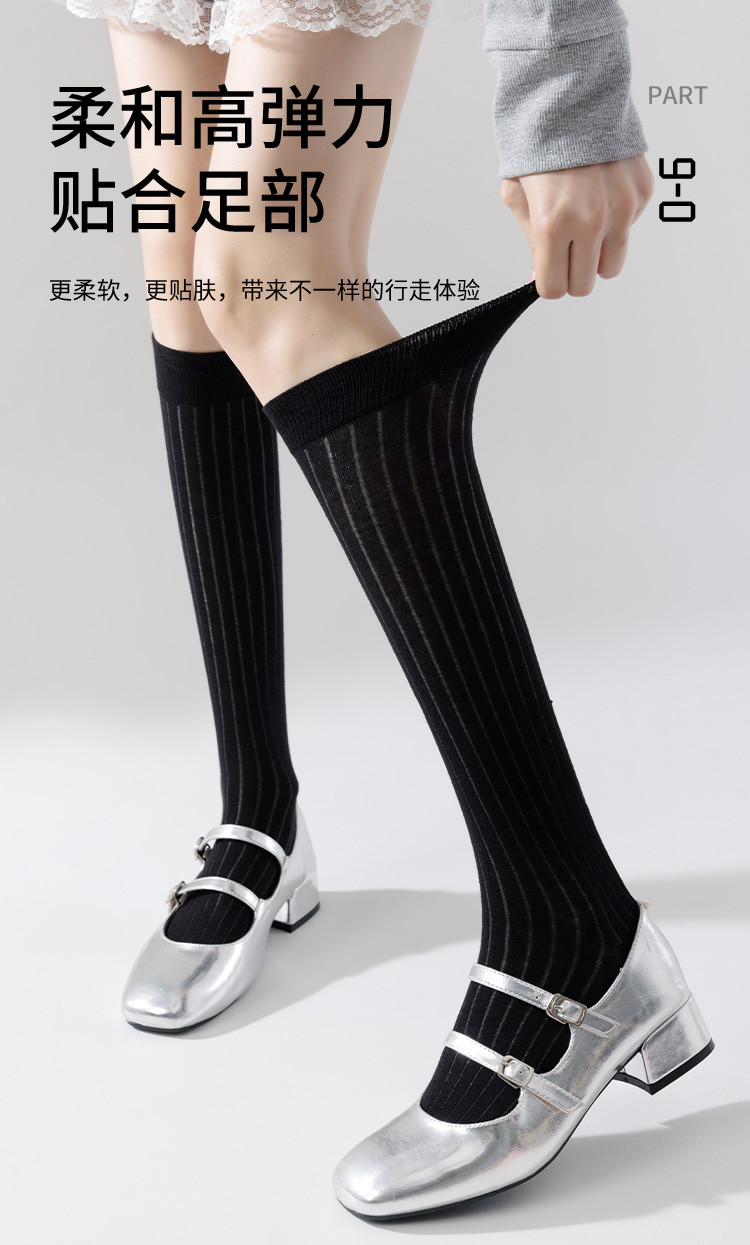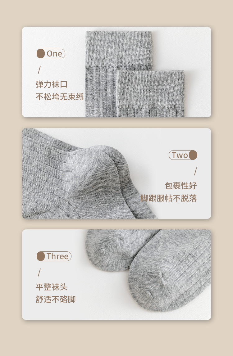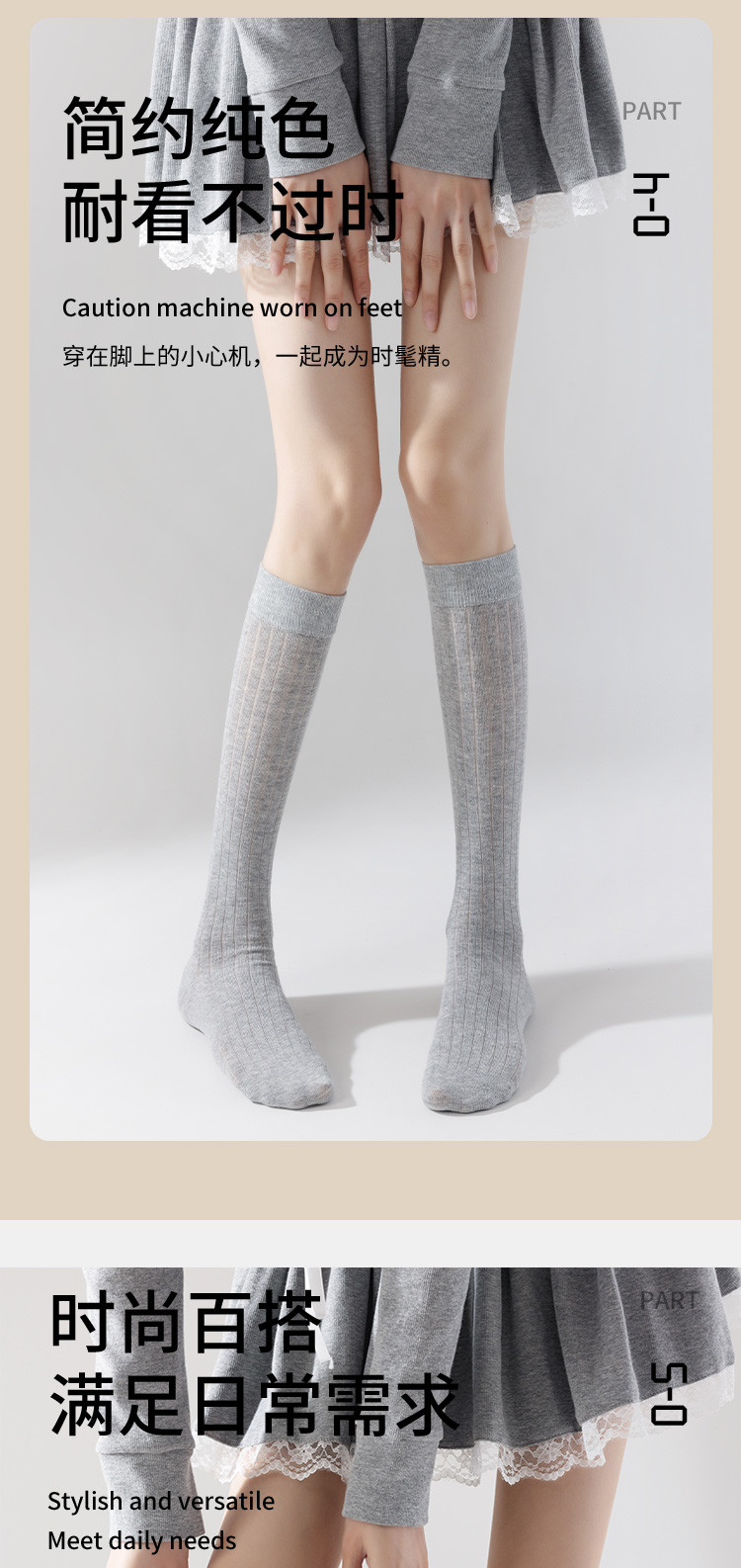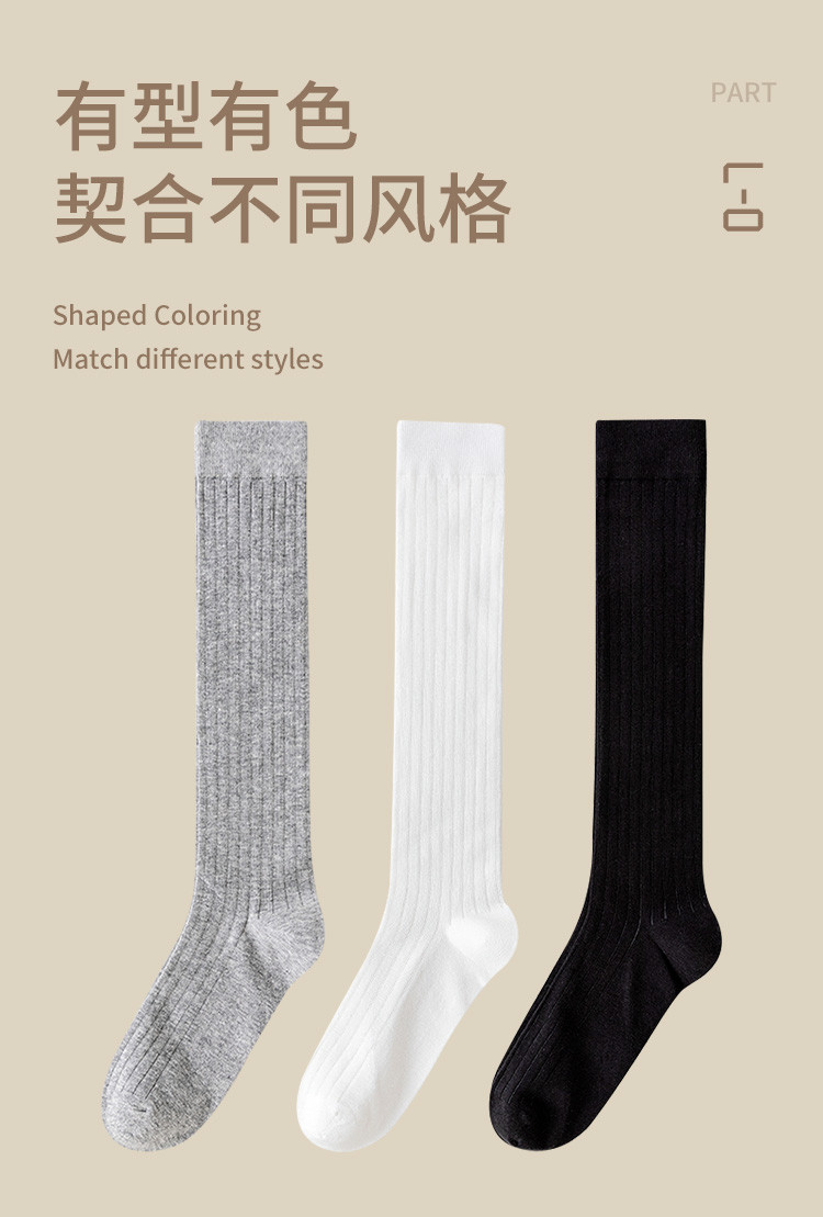 【百搭小腿袜】3双装女袜春款舒适棉柔纯色简约长筒袜微压显瘦 010891