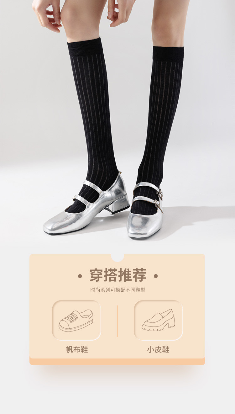 商品名称:【百搭小腿袜】3双装女袜春款舒适棉柔纯色简约长筒袜微压显瘦 010891