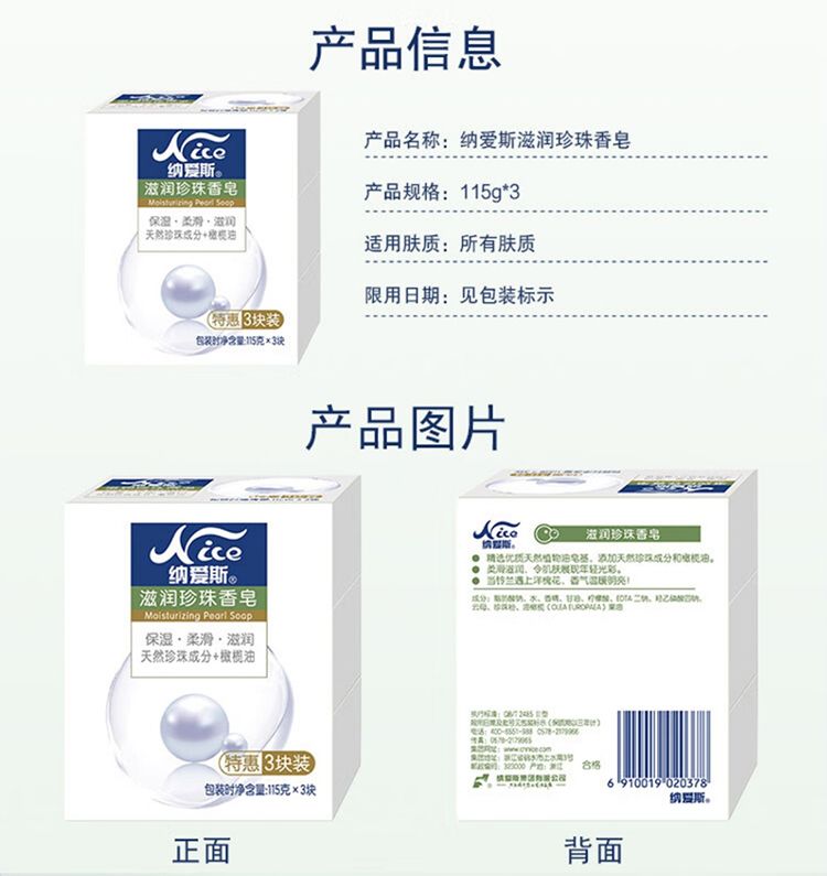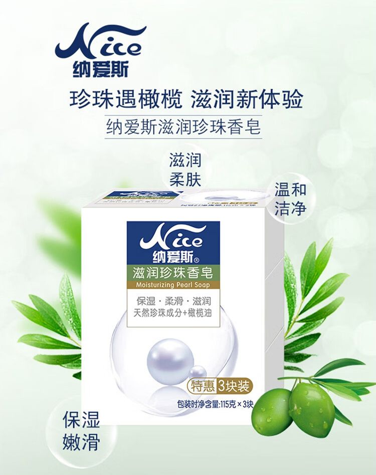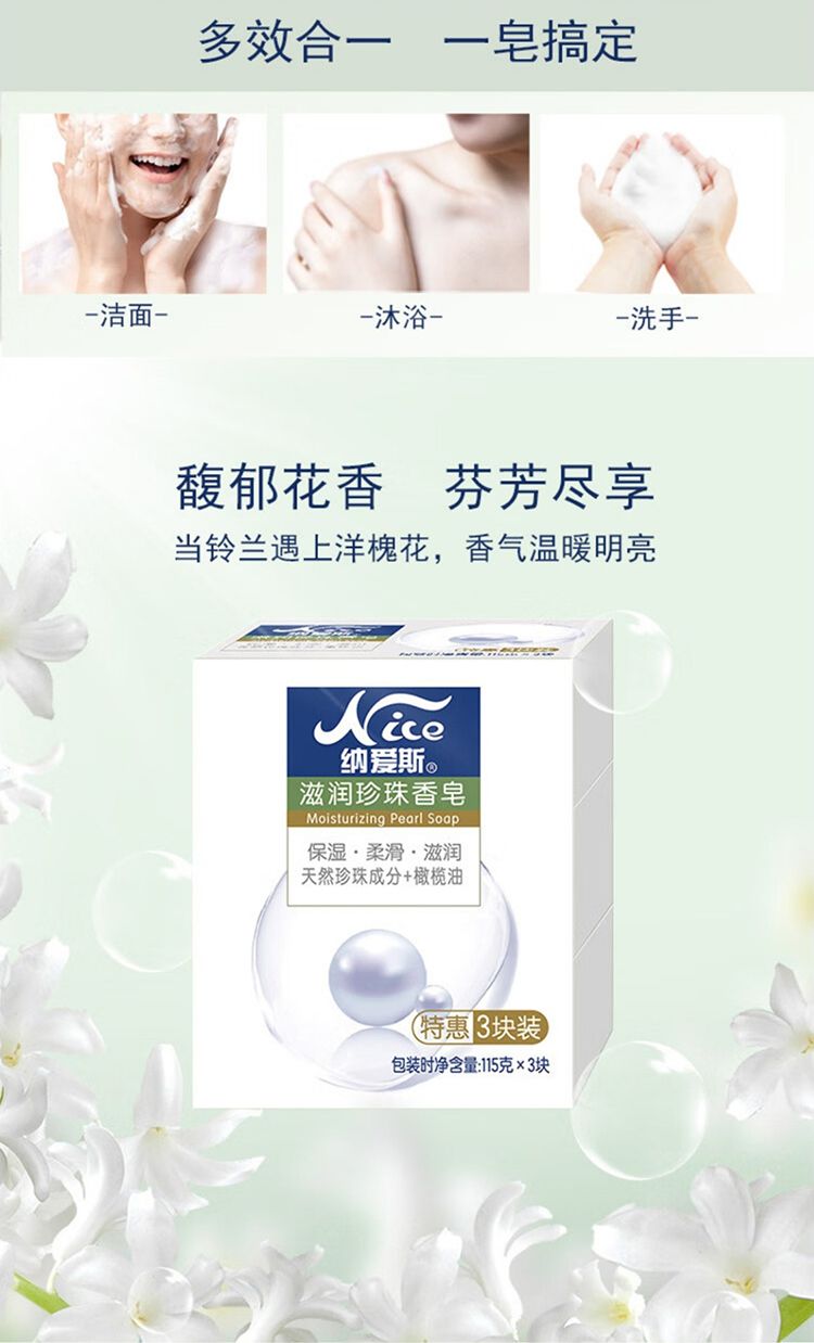 商品名称:纳爱斯 珍珠香皂(滋润)(115gx3块装)