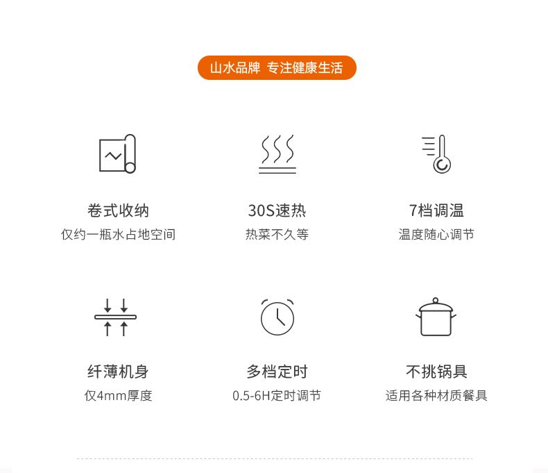 商品名称:山水(SANSUI)可收纳暖菜板SDN-2095