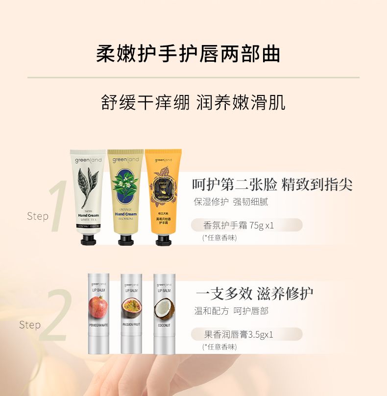 商品名称:greenland/格兰大地 护手霜唇膏套装礼盒