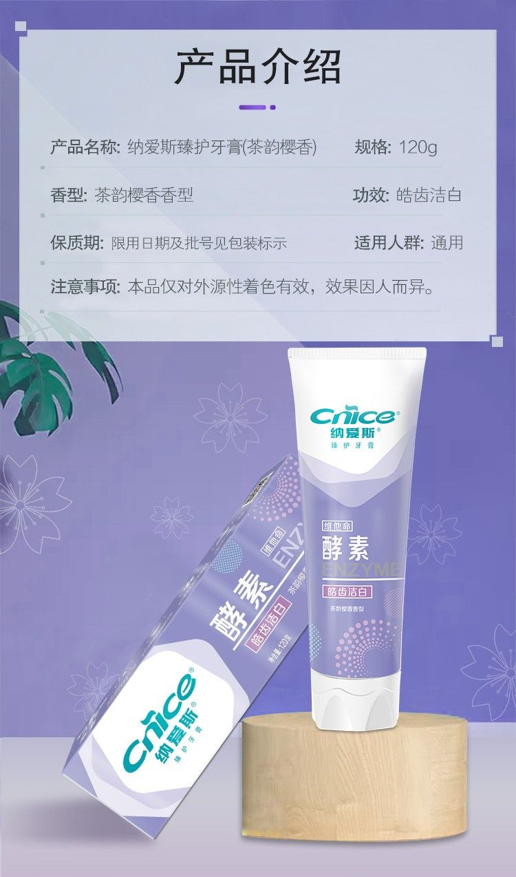 商品名称:纳爱斯 臻护酵素牙膏(茶韵樱香)(120g)