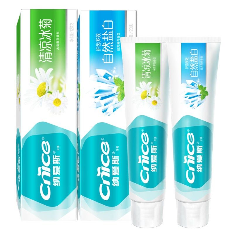 商品名称:纳爱斯 牙膏清凉冰菊120g+自然盐白120g