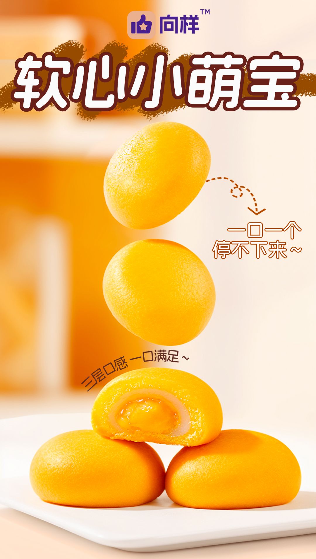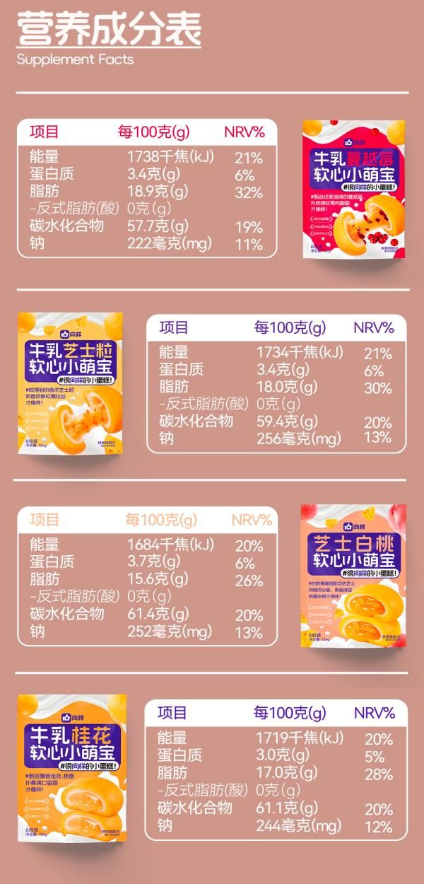 商品名称:向样 软心小萌宝麻薯夹心软心蛋糕 126g*4袋