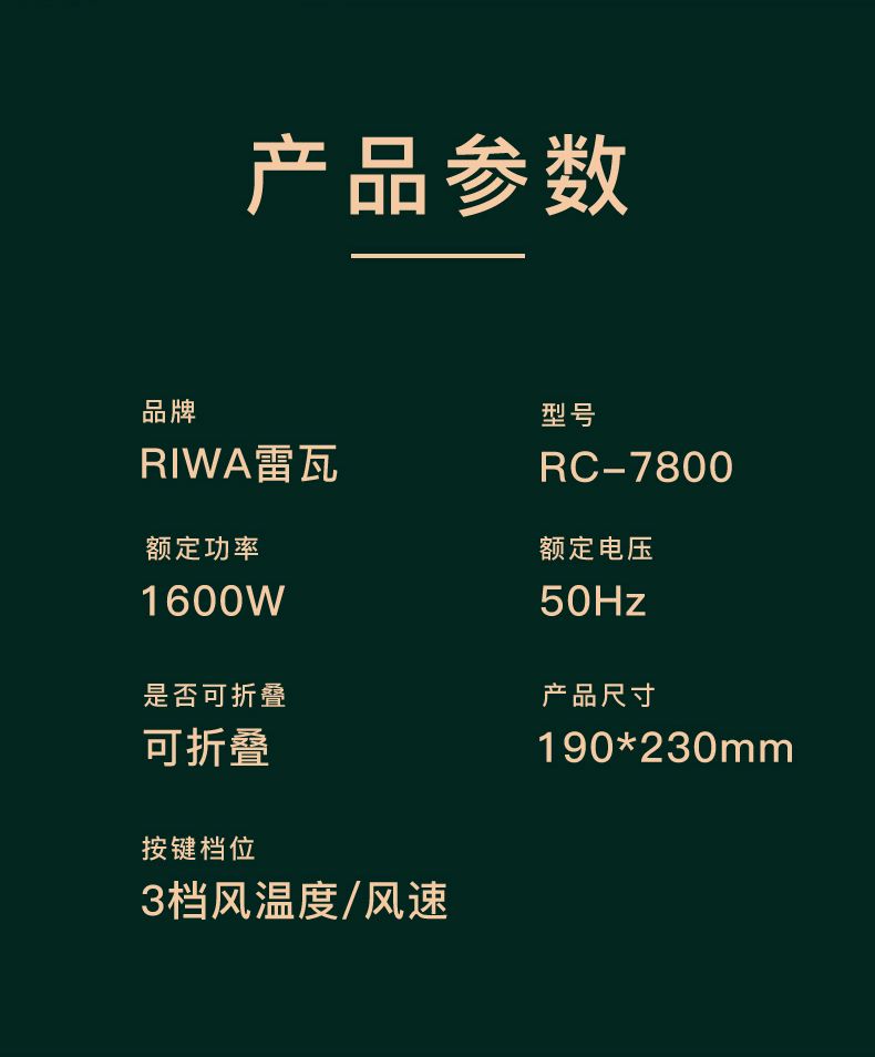 商品名称:RIWA 雷瓦电吹风RC-7800