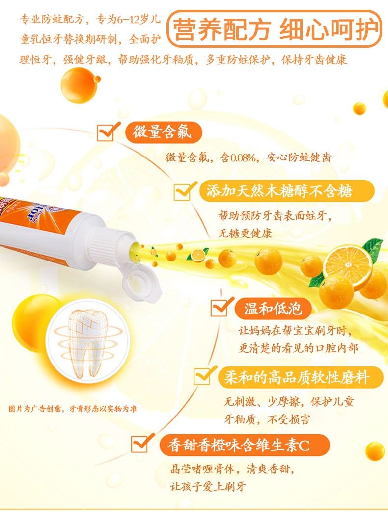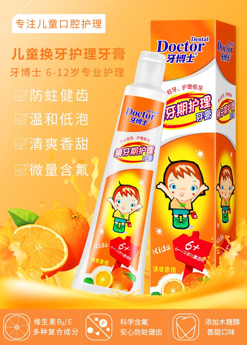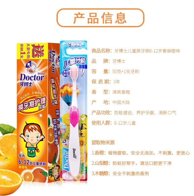 商品名称:牙博士儿童换牙期6-12岁套装橙味(50g+牙刷)*2组