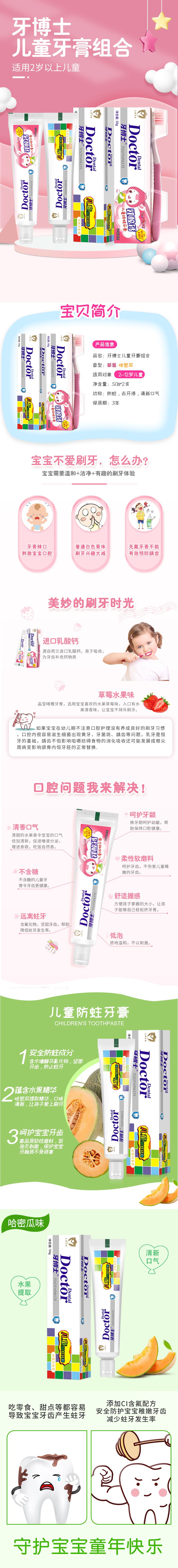 商品名称:牙博士儿童防蛀牙膏哈蜜瓜味50g+牙博士儿童AD钙牙膏草莓味50g+牙刷