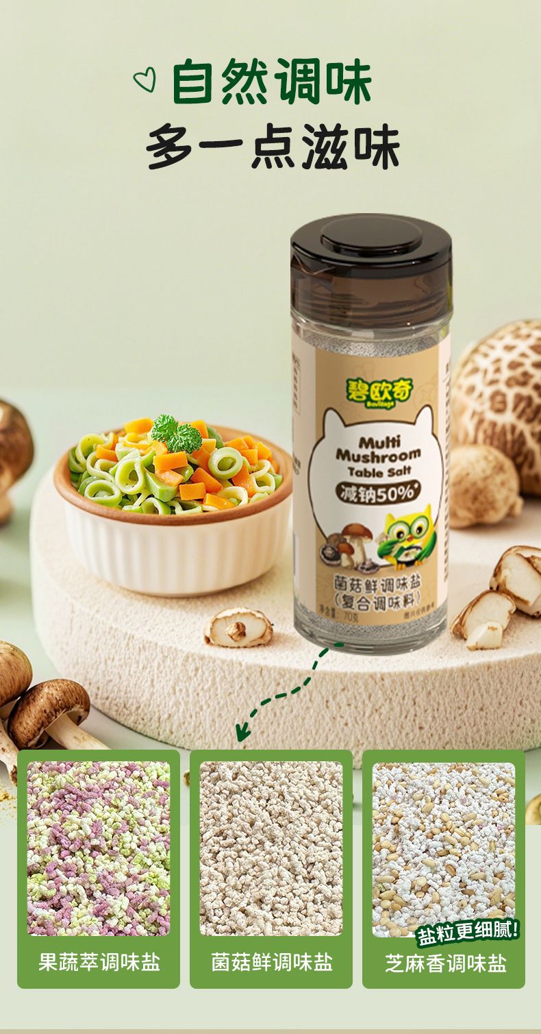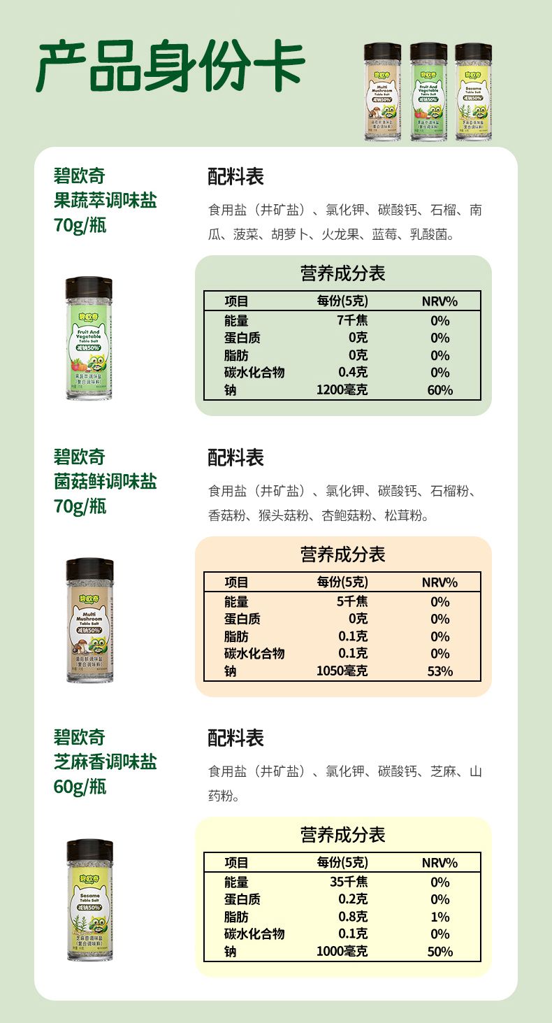 商品名称:碧欧奇 果蔬盐芝麻盐调味料(果蔬萃/菌菇鲜/芝麻香)