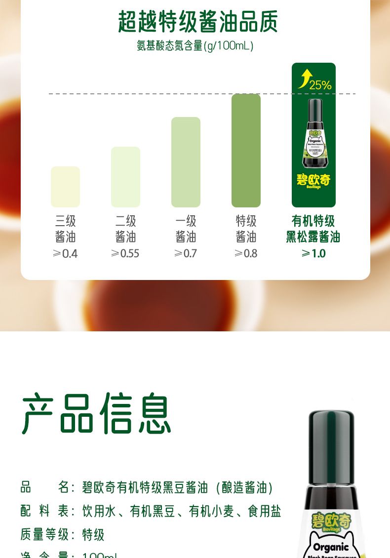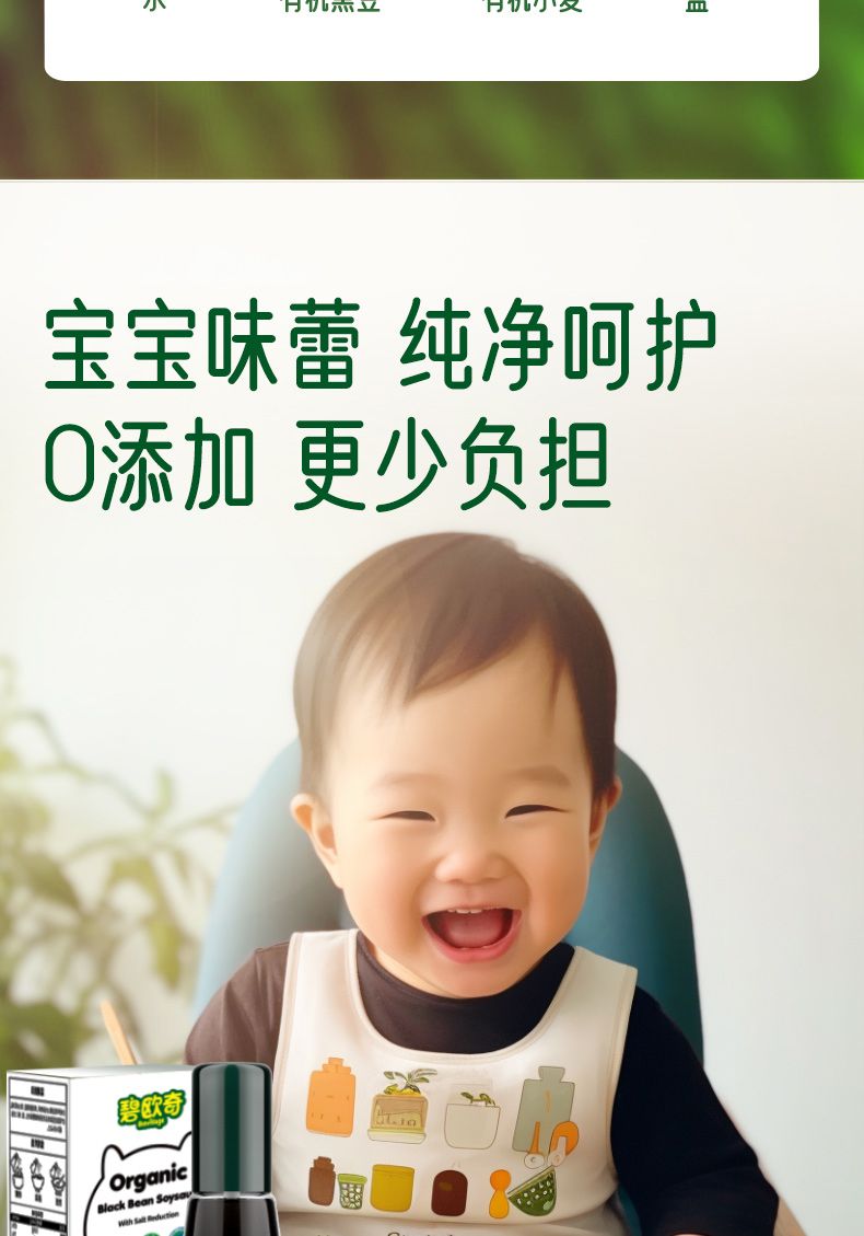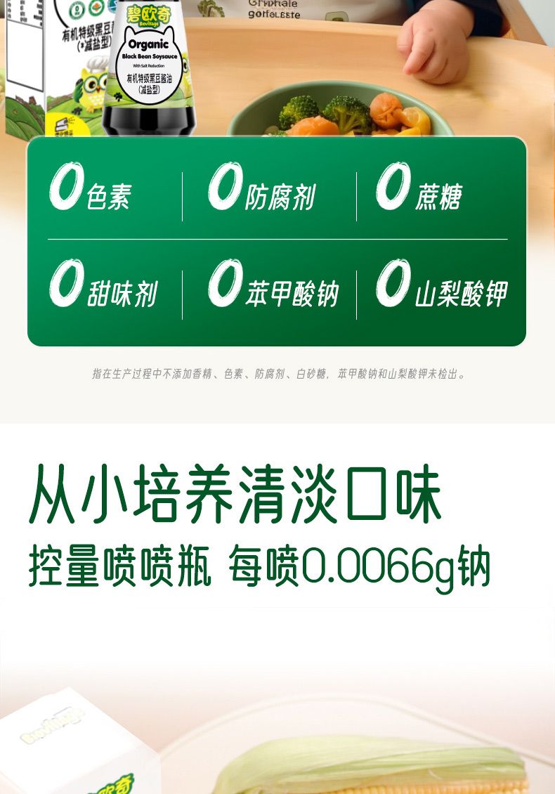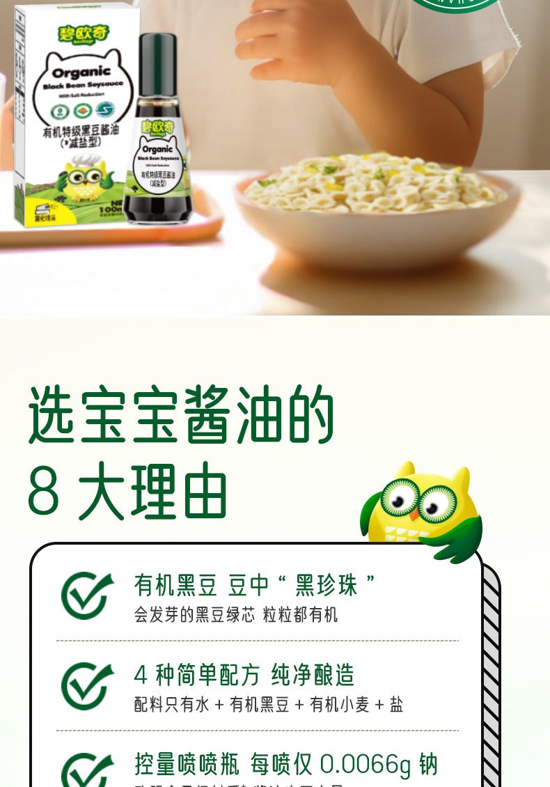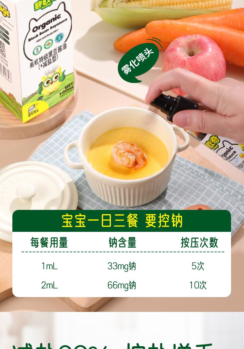 商品名称:碧欧奇 有机黑豆酱油无添加儿童专用辅食调味料减盐 雾化喷头设计精准定量