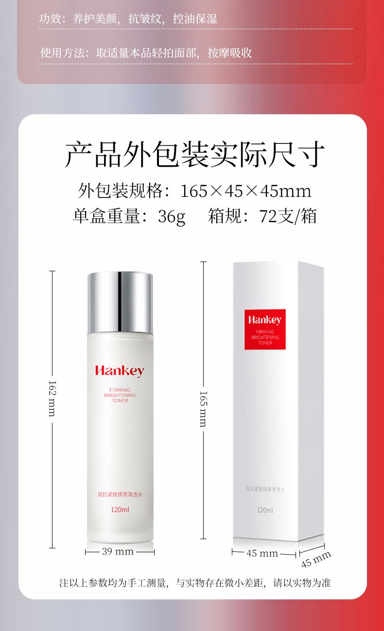 商品名称:Hankey/韩纪 双抗紧致焕亮 清透水120ml/清透乳100ml