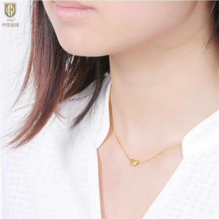 中国金楼梵尚品5D足金吊坠小爱心(附赠K金项链)JJJ31013045送礼送生日礼物送女友(下单赠手机贴随机一个)
