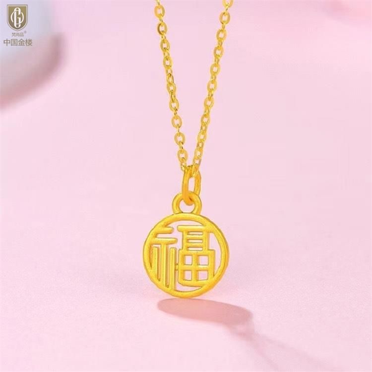 中国金楼梵尚品5D足金吊坠百福弯管送礼好物礼盒装送女友JJJ11251967(下单赠手机贴随机一个)