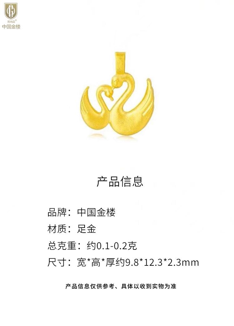 商品名称:中国金楼梵尚品5D足金吊坠天鹅送礼好物礼盒装送女友JJJ17351154(下单赠手机贴随机一个)
