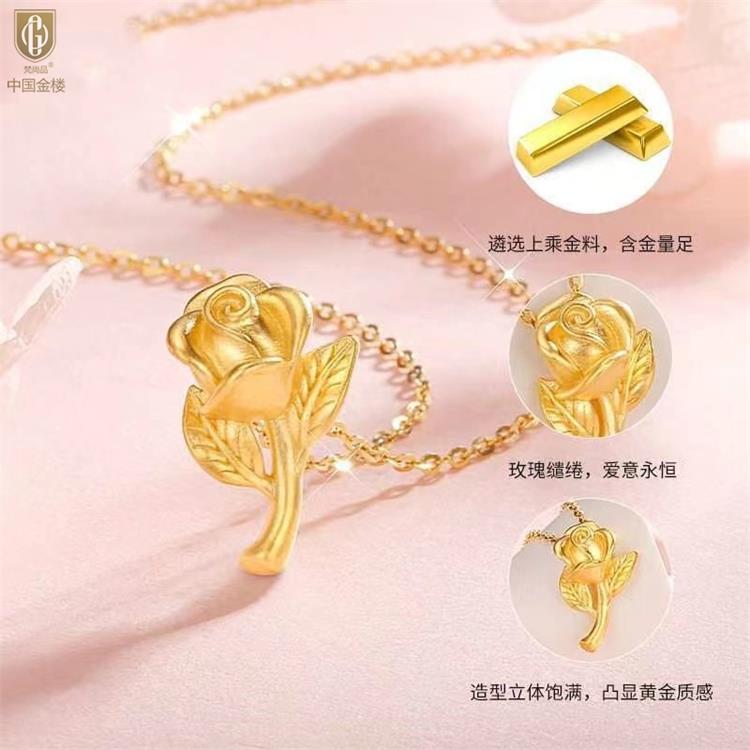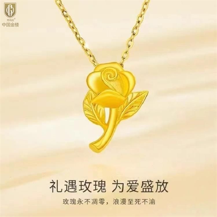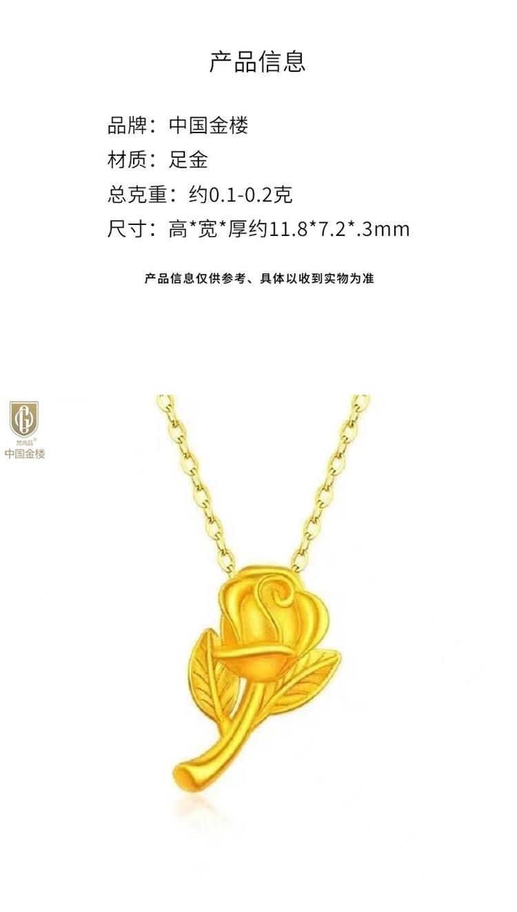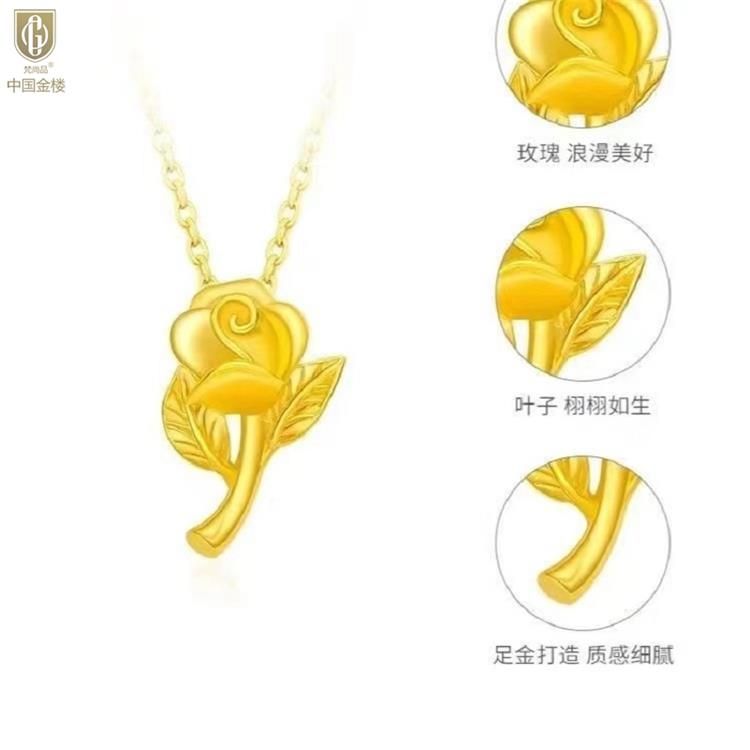 商品名称:中国金楼梵尚品5D足金玫瑰花吊坠送礼好物礼盒装送女友JJJ58588823(下单赠手机贴随机一个)