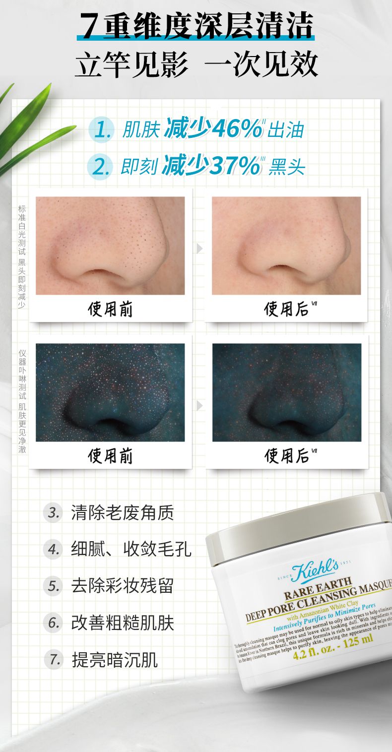 商品名称:Kiehl's/科颜氏 白泥面膜125ml+高保湿面霜125ml
