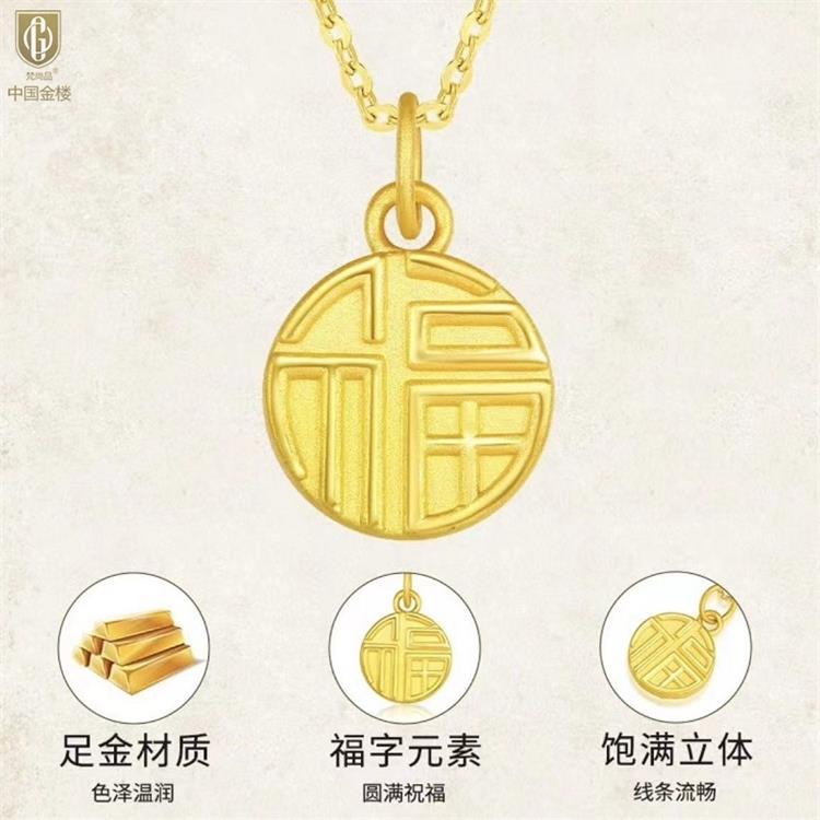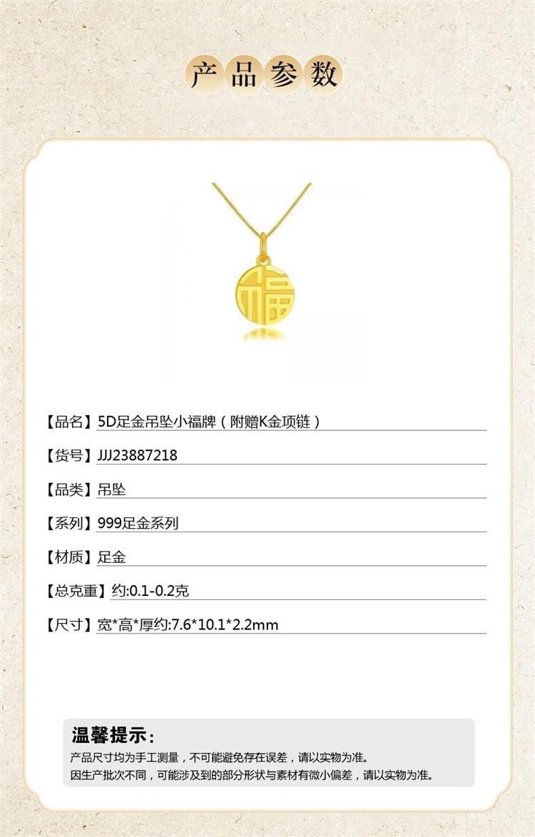 商品名称:中国金楼梵尚品5D足金吊坠小福牌送礼好物礼盒装送女友JJJ23887218(下单赠手机贴随机一个)