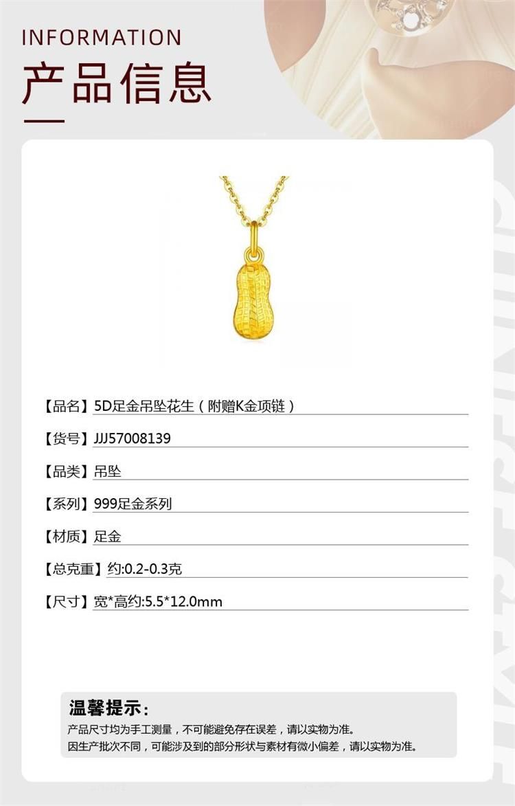 商品名称:中国金楼梵尚品5D足金吊坠花生送礼好物礼盒装送女友JJJ57008139(下单赠手机贴随机一个)
