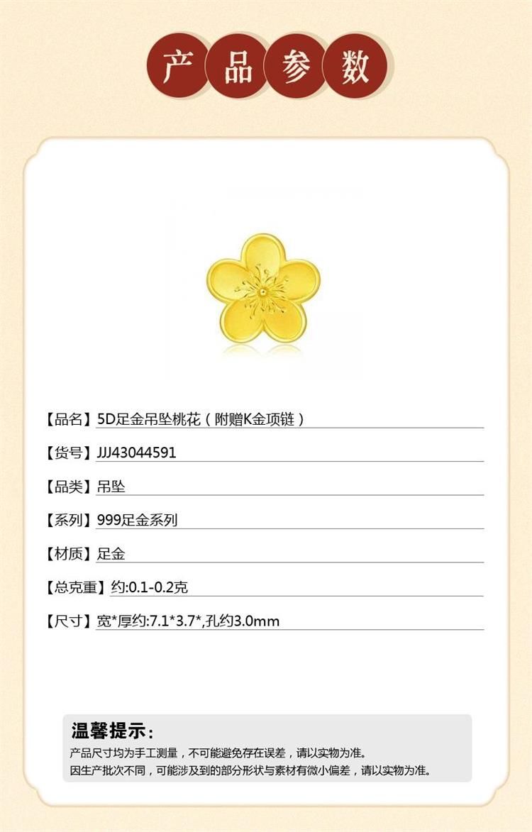 商品名称:中国金楼梵尚品5D足金吊坠桃花送礼好物礼盒装送女友JJJ43044591(下单赠手机贴随机一个)