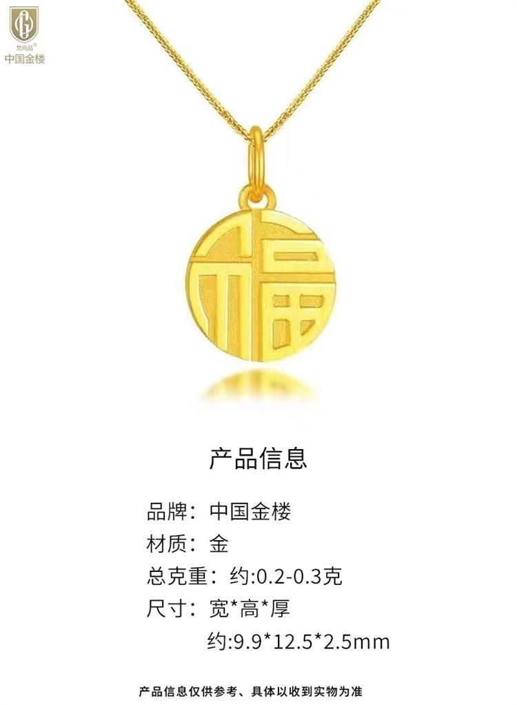 商品名称:中国金楼梵尚品5D足金吊坠福牌送礼好物礼盒装送女友JJJ25410268(下单赠手机贴随机一个)