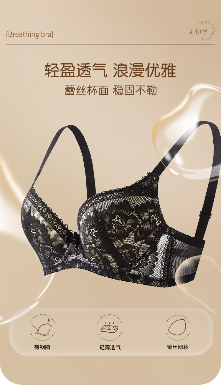 商品名称:花朵蕾丝聚拢侧收文胸罩舒适透气亲肤优雅性感文胸内衣女 162571