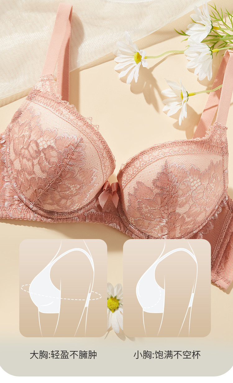 花朵蕾丝聚拢侧收文胸罩舒适透气亲肤优雅性感文胸内衣女 162571