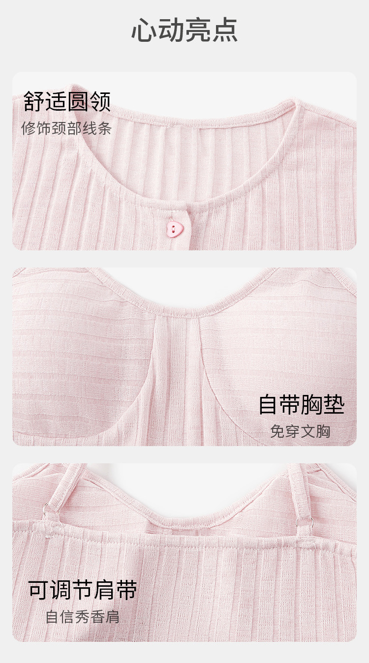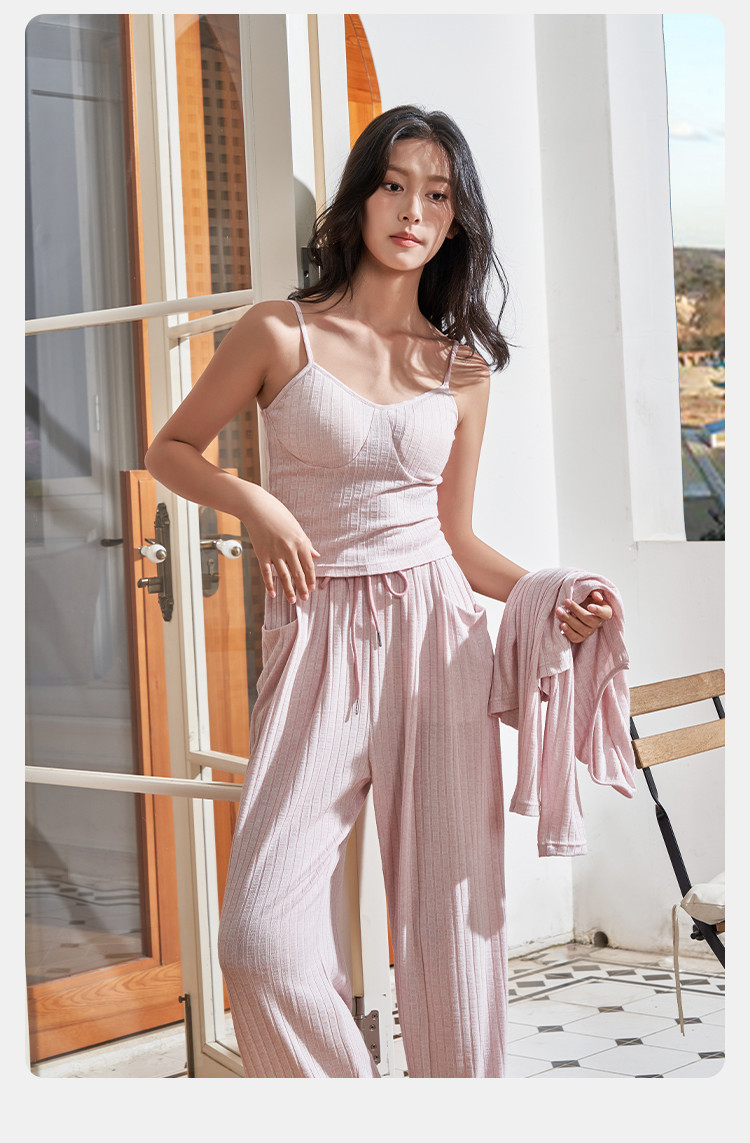 商品名称:【三件套】春秋夏季薄款高级感睡衣女带胸垫吊带女士家居服套装 943307
