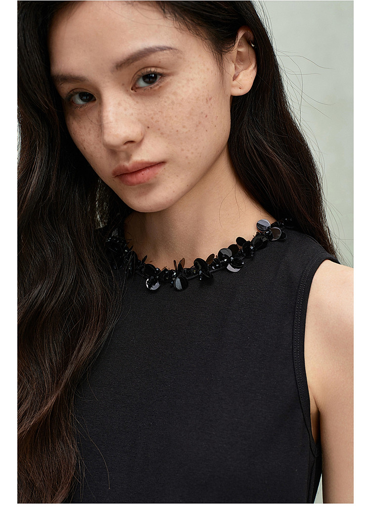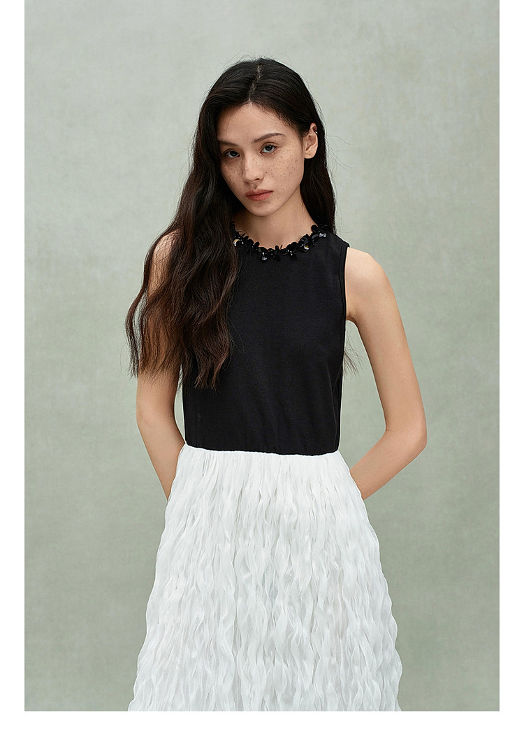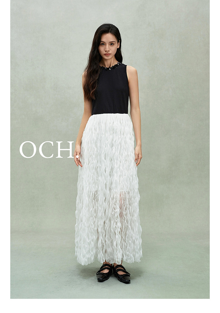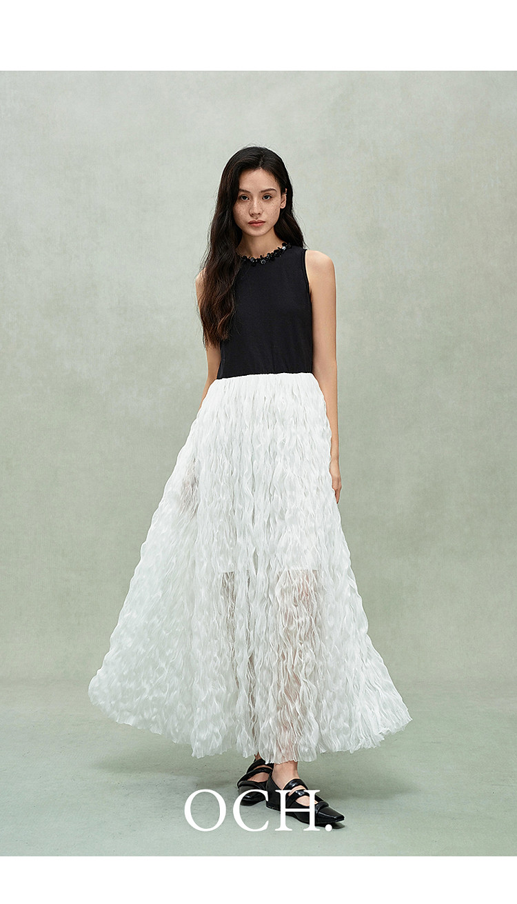 限定系列OCH.春装 皱纱长裙气质小黑裙假两件无袖连衣裙 190735