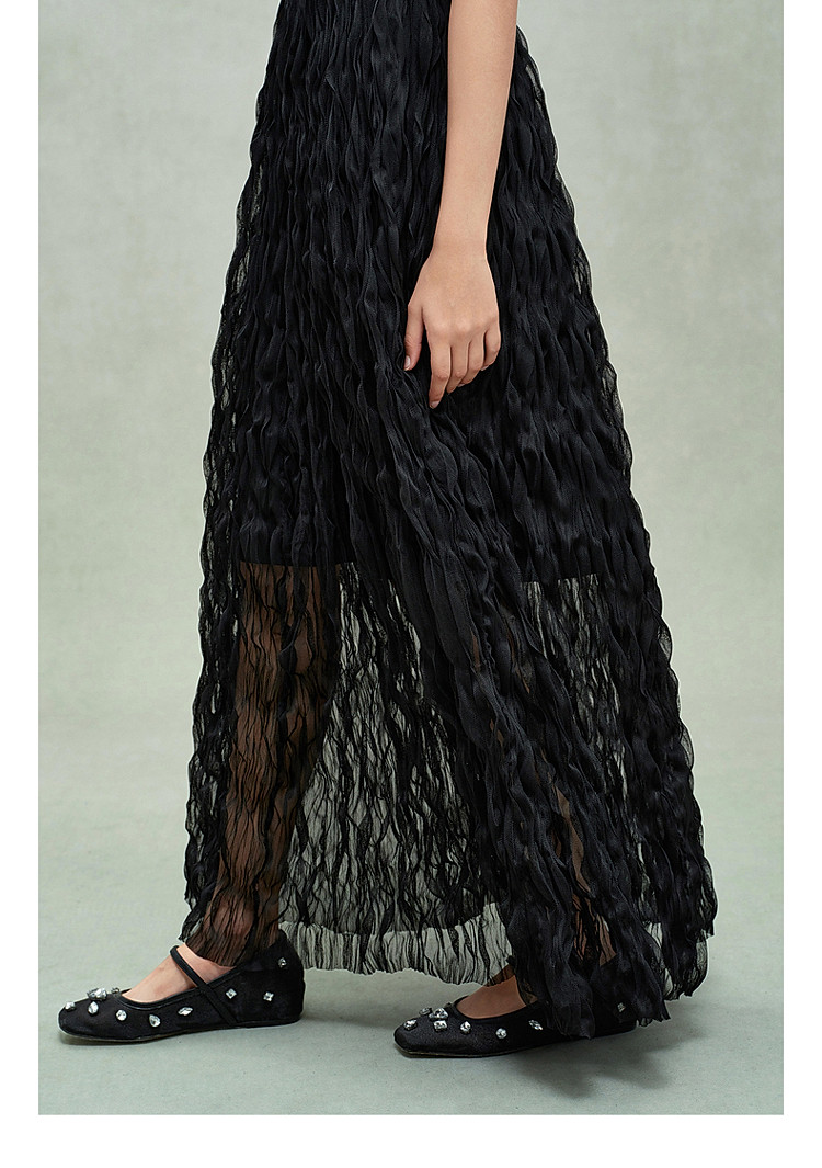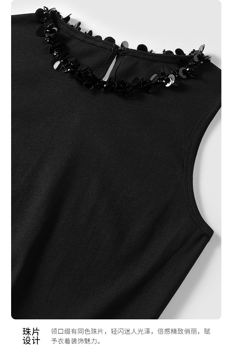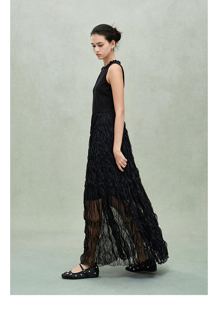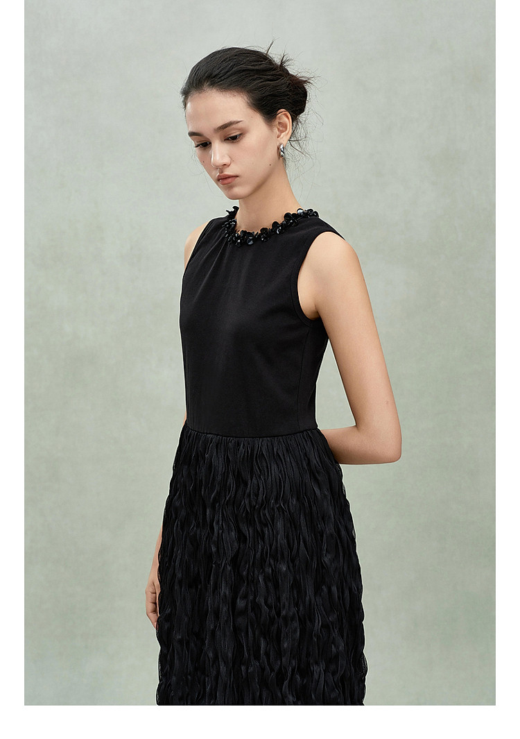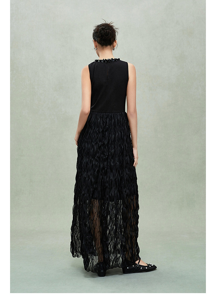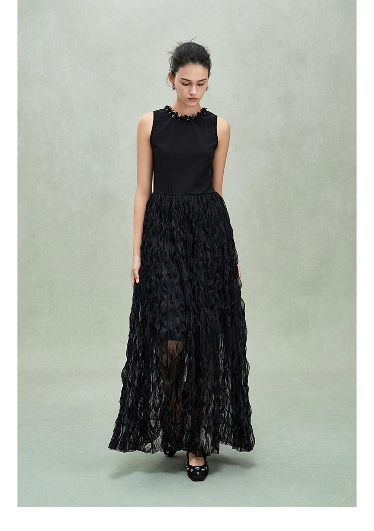 商品名称:限定系列OCH.春装 皱纱长裙气质小黑裙假两件无袖连衣裙 190735