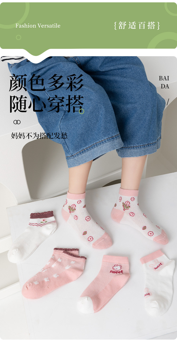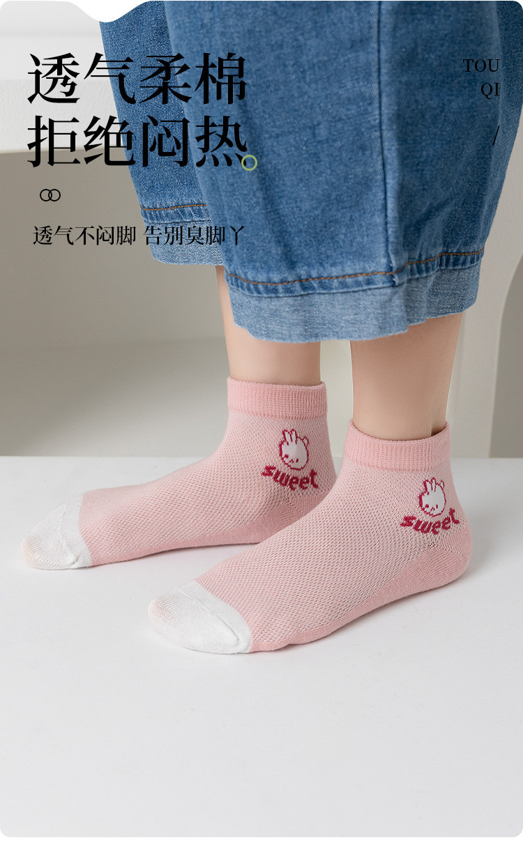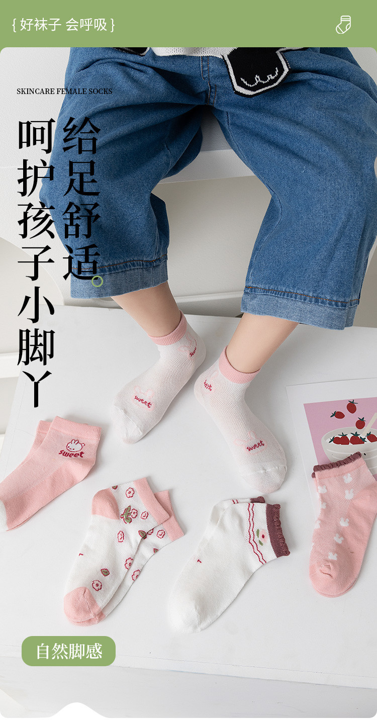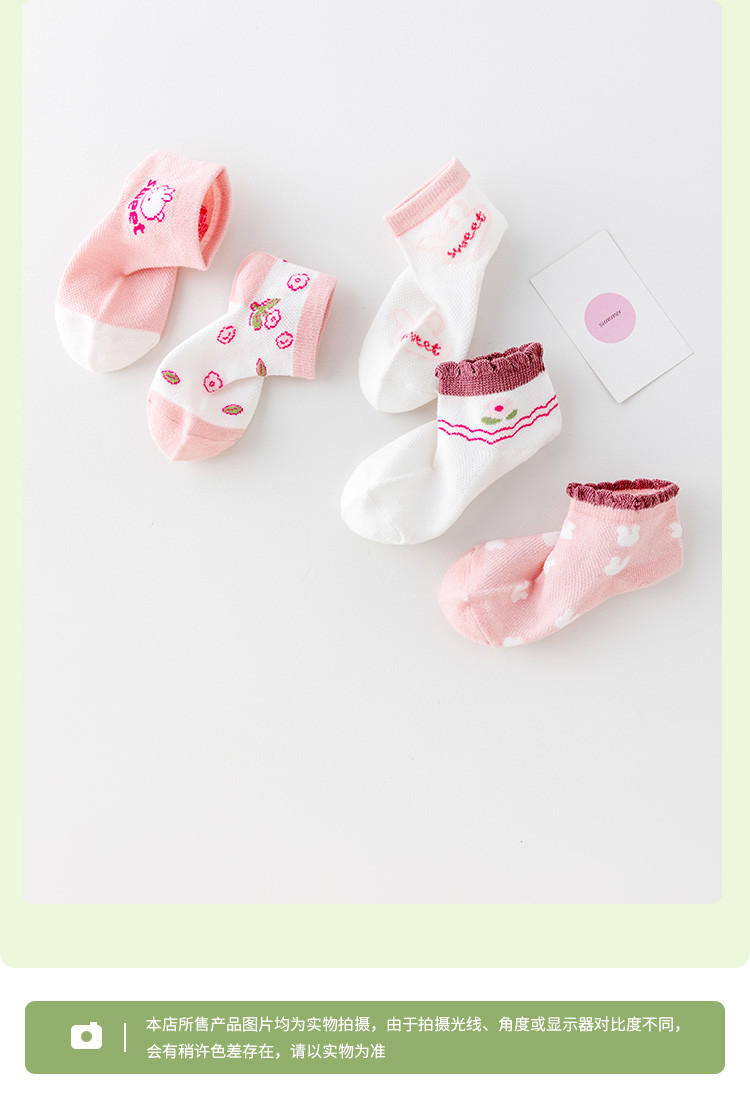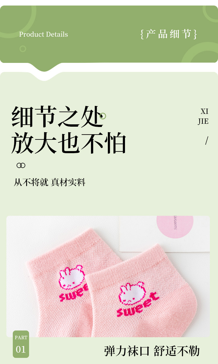 商品名称:【精梳棉五双装】可爱儿童袜子春夏款透气网眼宝宝袜女童男童短袜 229195